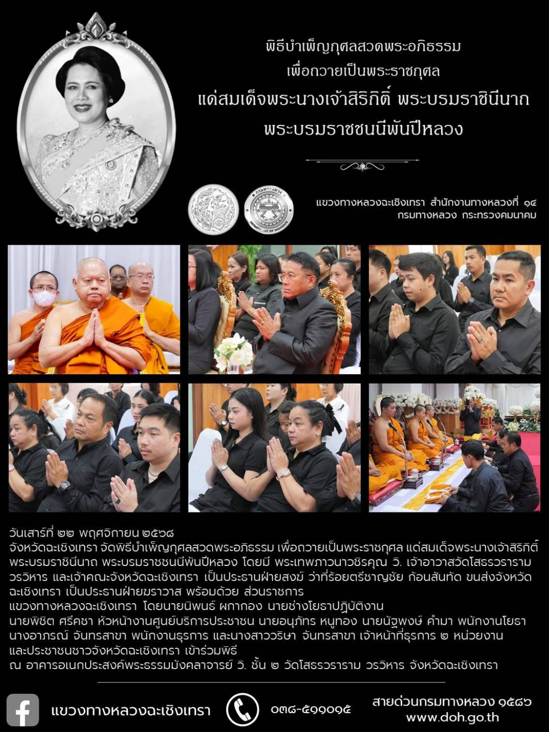 พิธีบำเพ็ญกุศลสวดพระอภิธรรม เพื่อถวายเป็นพระราชกุศล แด่สมเด็จพระนางเจ้าสิริกิติ์ พระบรมราชินีนาถ พระบรมราชชนนีพันปีหลวง จังหวัดฉะเชิงเทรา