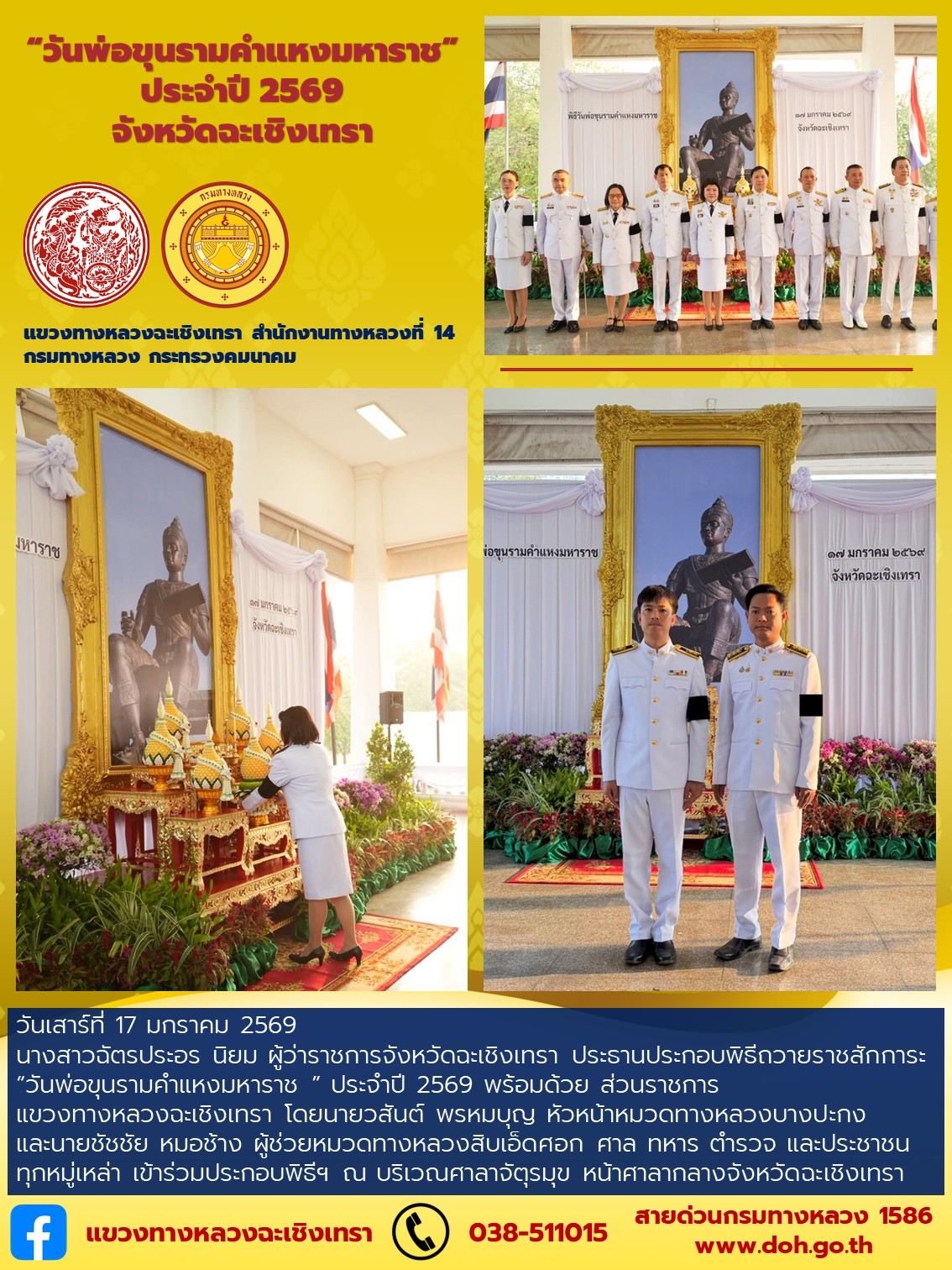 “วันพ่อขุนรามคำแหงมหาราช” ประจำปี 2569 จังหวัดฉะเชิงเทรา