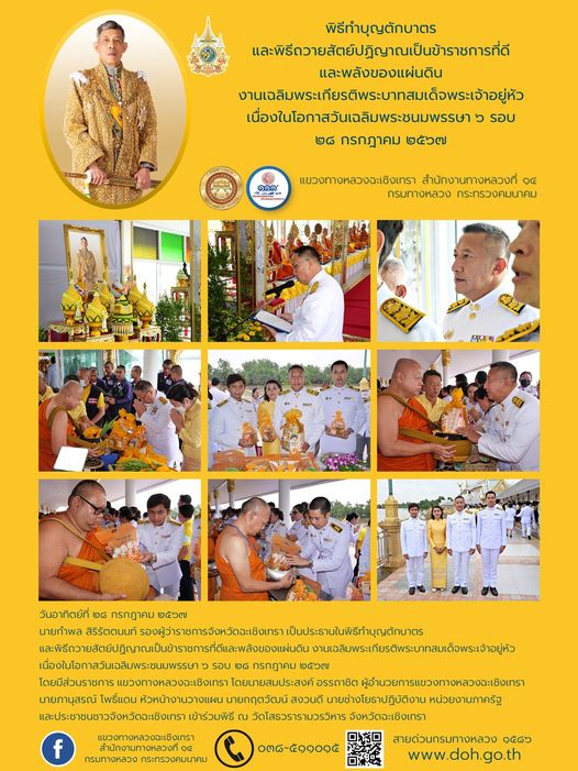 พิธีทำบุญตักบาตร และพิธีถวายสัตย์ปฏิญาณเป็นข้าราชการที่ดีและพลังของแผ่นดิน งานเฉลิมพระเกียรติพระบาทสมเด็จพระเจ้าอยู่หัว เนื่องในโอกาสวันเฉลิมพระชนมพรรษา ๖ รอบ