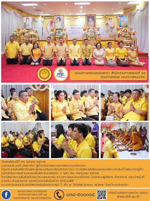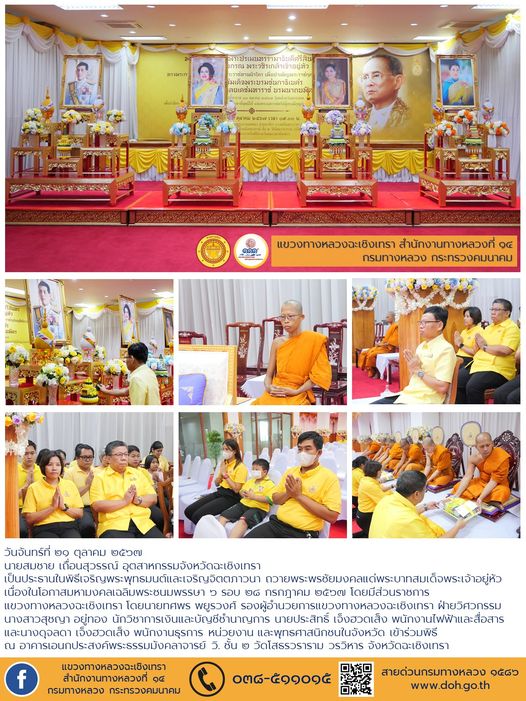 พิธีสวดพระพุทธมนต์ พิธีทำบุญตักบาตรถวายพระราชกุศล และพิธีวางพวงมาลา เนื่องในวันนวมินทรมหาราช ๑๓ ตุลาคม ๒๕๖๗ จังหวัดฉะเชิงเทรา