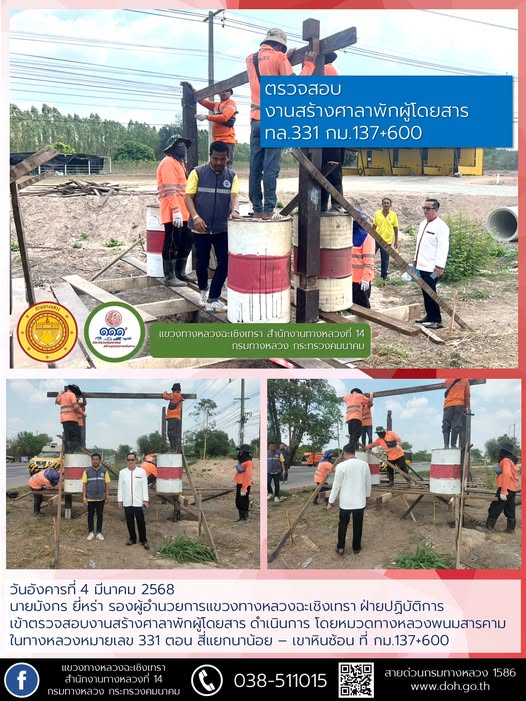 เข้าตรวจสอบงานสร้างศาลาพักผู้โดยสาร |