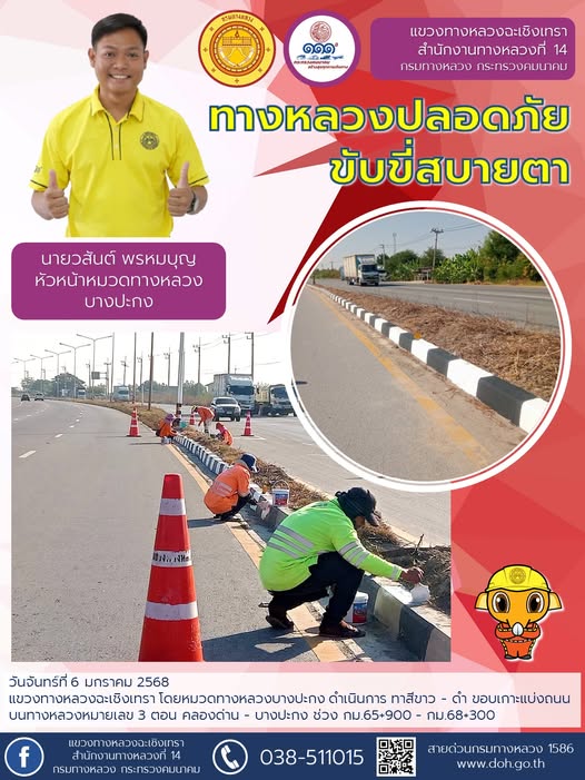 ทาสีขาว - ดำ ขอบเกาะแบ่งถนน |