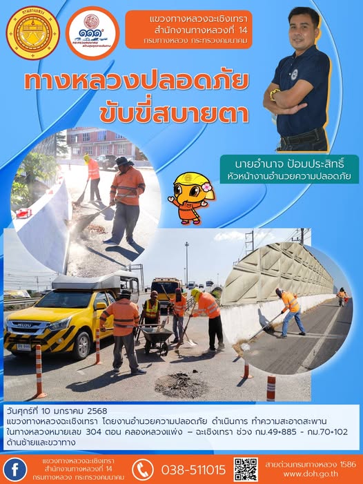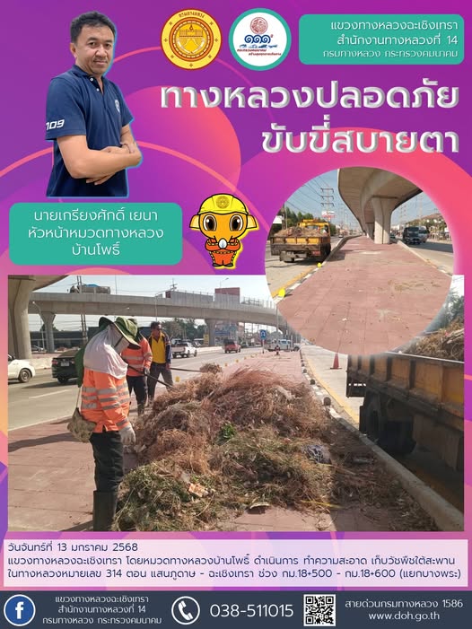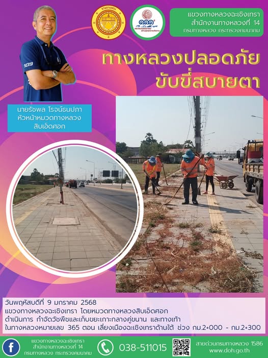 กำจัดวัชพืชและเก็บขยะเกาะกลางคู่ขนาน และทางเท้า |