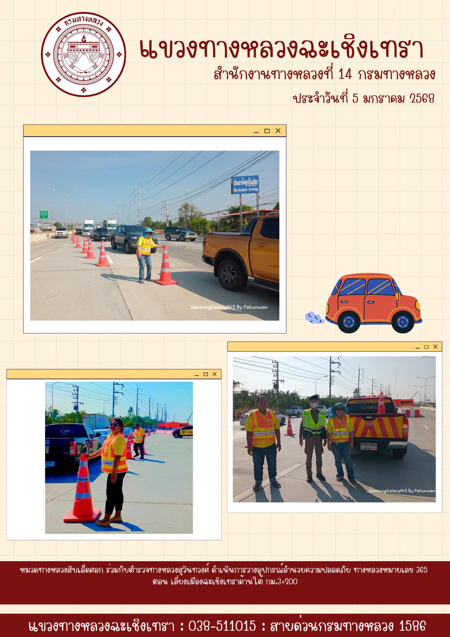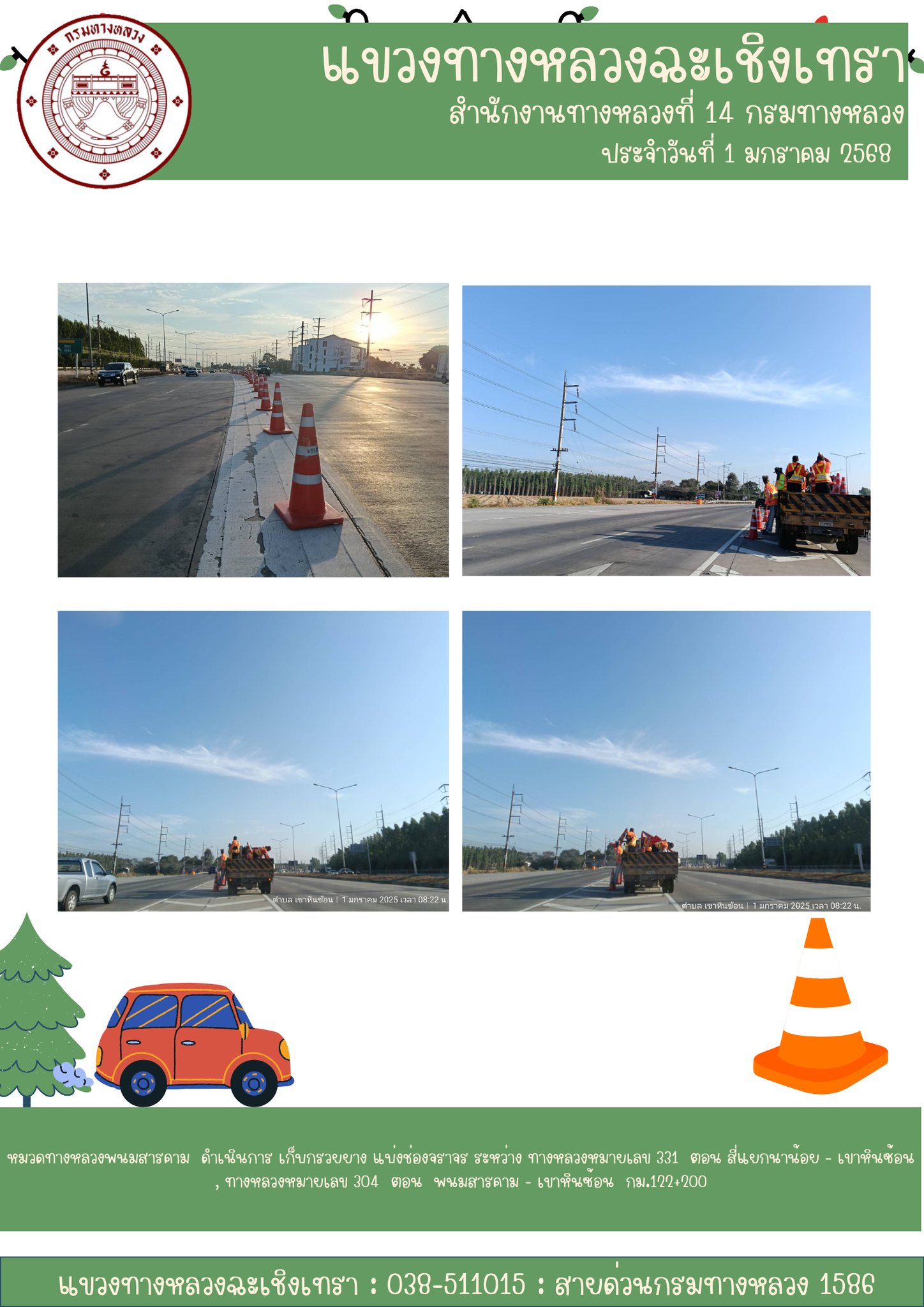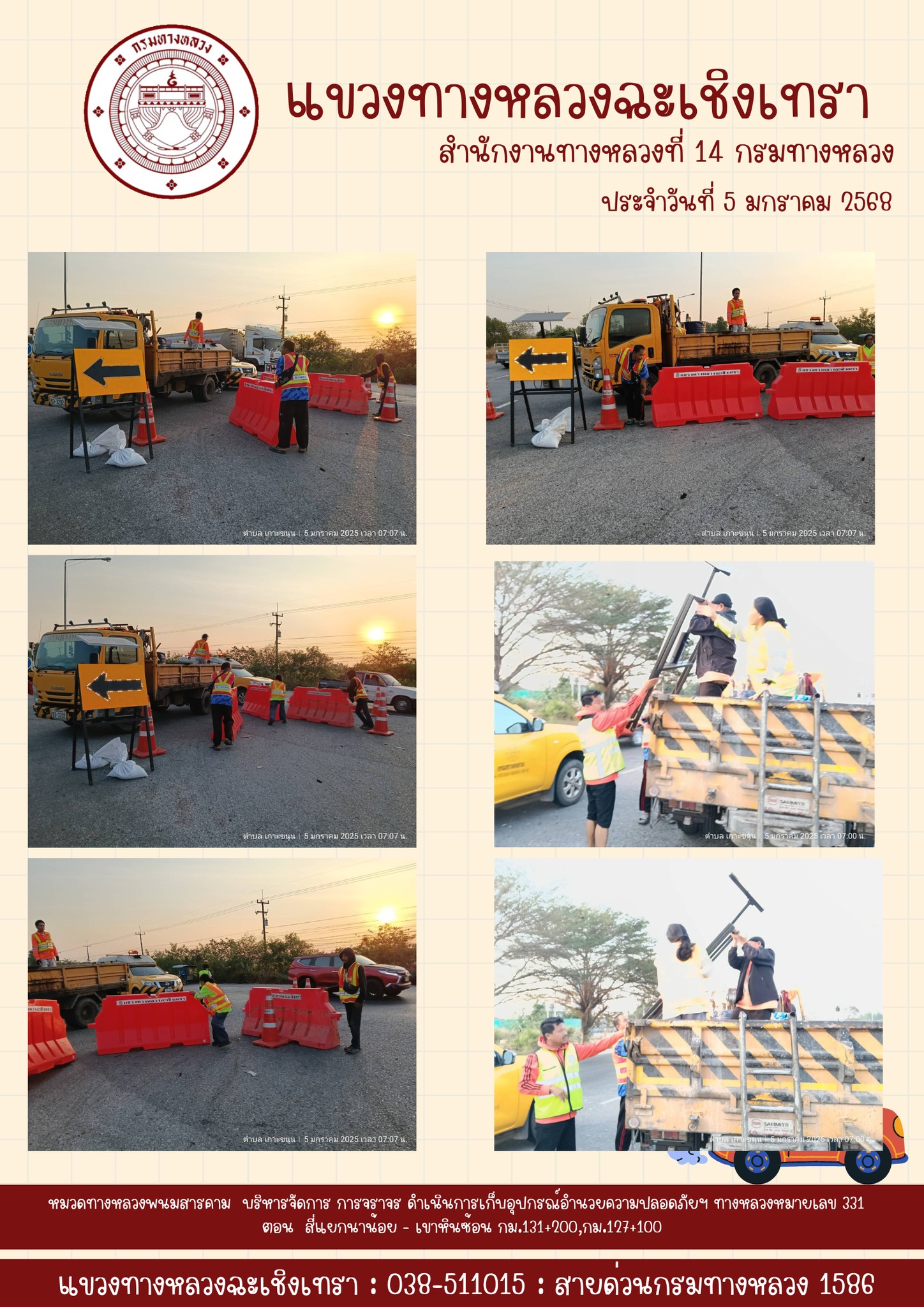 เก็บกรวยยาง แบ่งช่องจราจร |