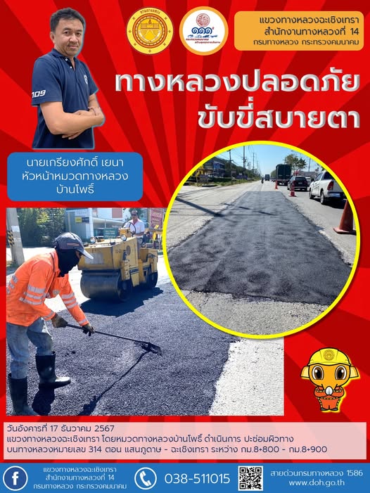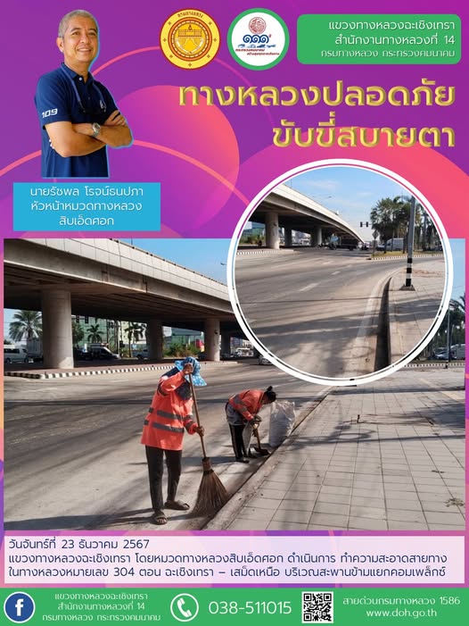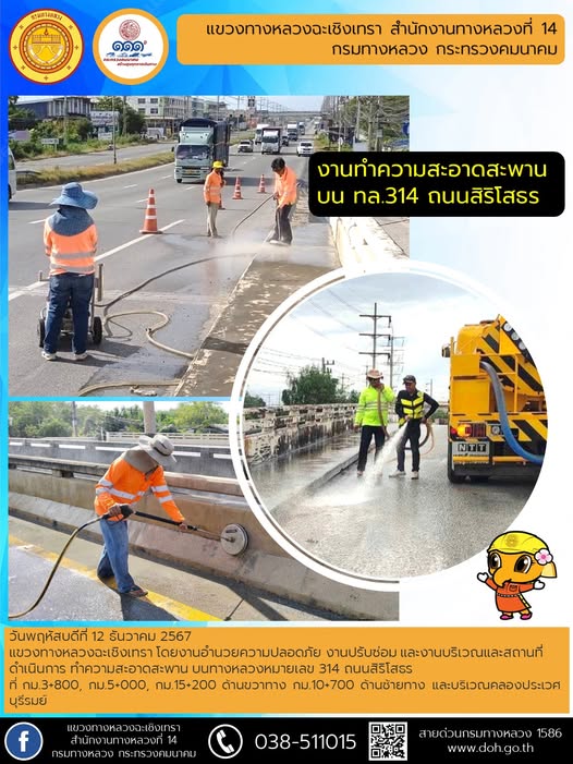 งานทำความสะอาดสะพาน บน ทล.314 ถนนสิริโสธร |