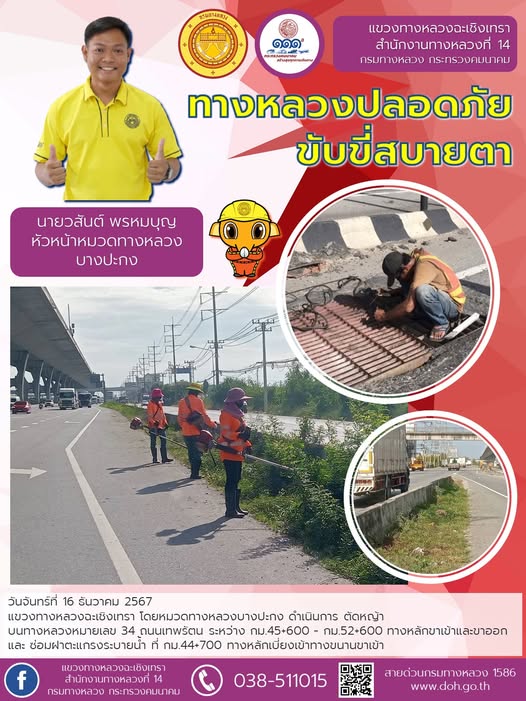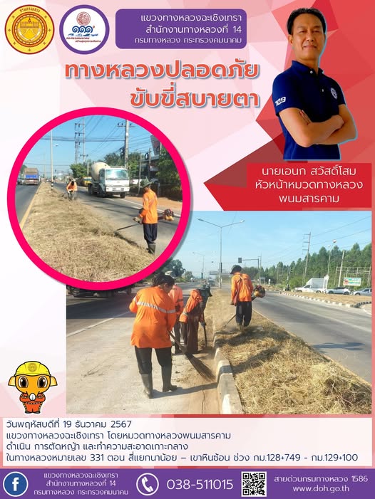 ตัดหญ้า และทำความสะอาดเกาะกลาง |