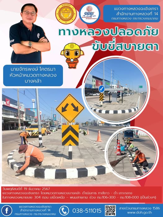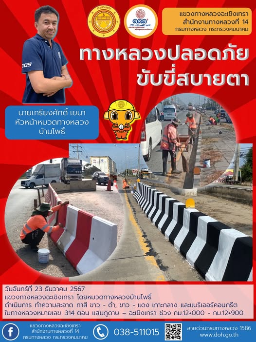 ทำความสะอาด ทาสี ขาว - ดำ, ขาว - แดง เกาะกลาง และแบริเออร์คอนกรีต |