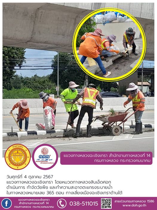 กำจัดวัชพืช และทำความสะอาดตะแกรงระบายน้ำ |