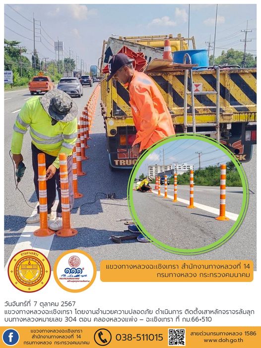 ติดตั้งเสาหลักจราจรล้มลุก |