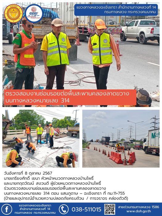 ตรวจสอบงานซ่อมรอยต่อพื้นสะพานคลองลาดขวาง |