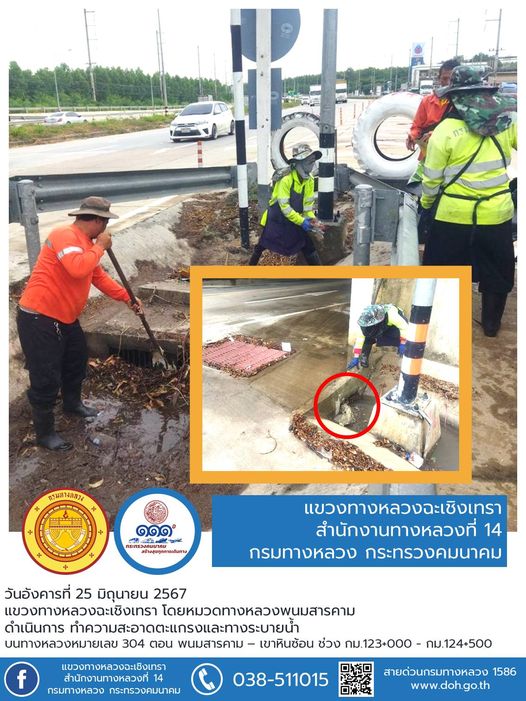 ระบายน้ำบนผิวจราจร บนทางหลวงหมายเลข 304 |