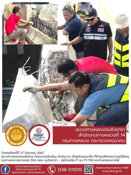 ตัดผนังคอนกรีต ที่ชำรุดเสียหายจากอุบัติเหตุ |