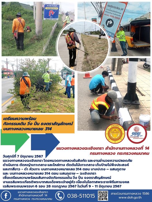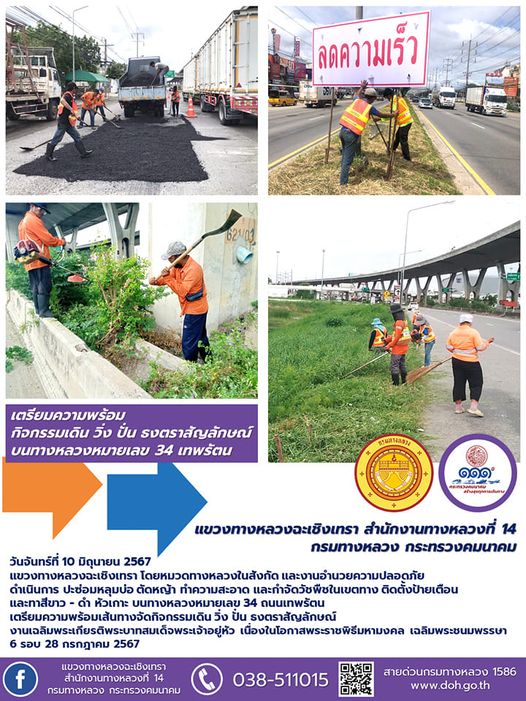 ตัดหญ้า ทำความสะอาดเกาะกลาง เก็บป้ายไม่พึงประสงค์ ติดตั้งป้ายเตือน ปะซ่อมหลุมบ่อ และทาสีขาว - ดำ หัวเกาะ บนทางหลวงหมายเลข 34 |