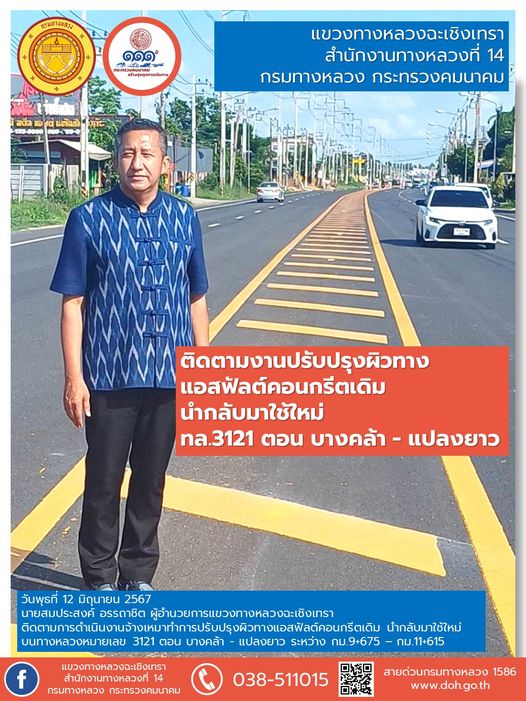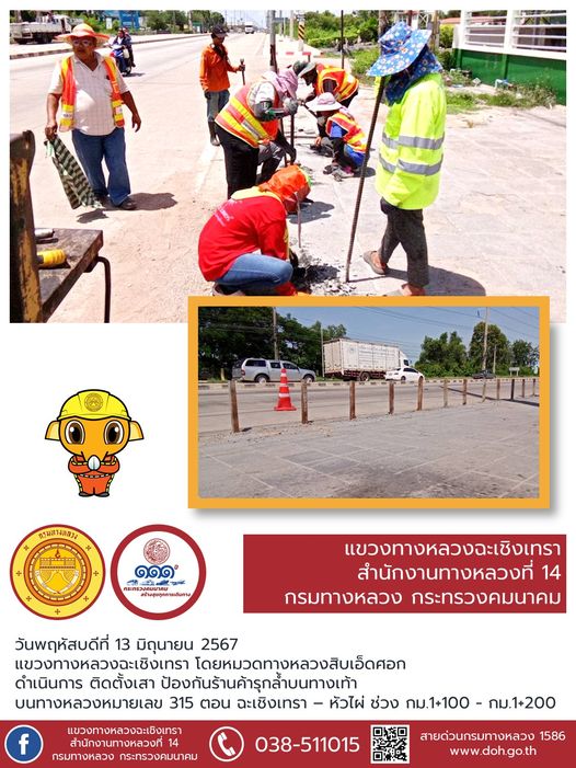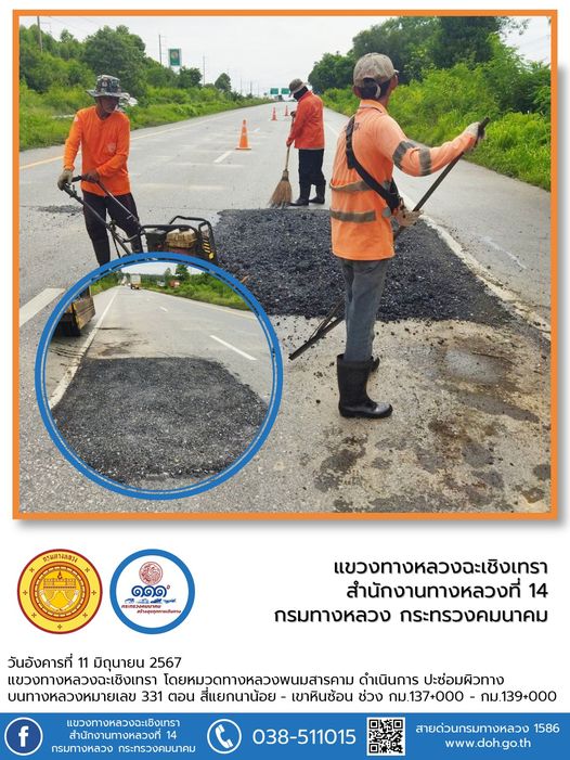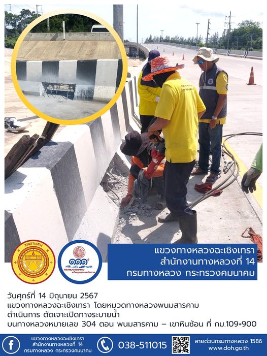 ปะซ่อมหลุมบ่อ ตัดหญ้า ทำความสะอาด กำจัดวัชพืชในเขตทาง ติดตั้งป้ายเตือน และทาสีขาว - ดำ หัวเกาะ |