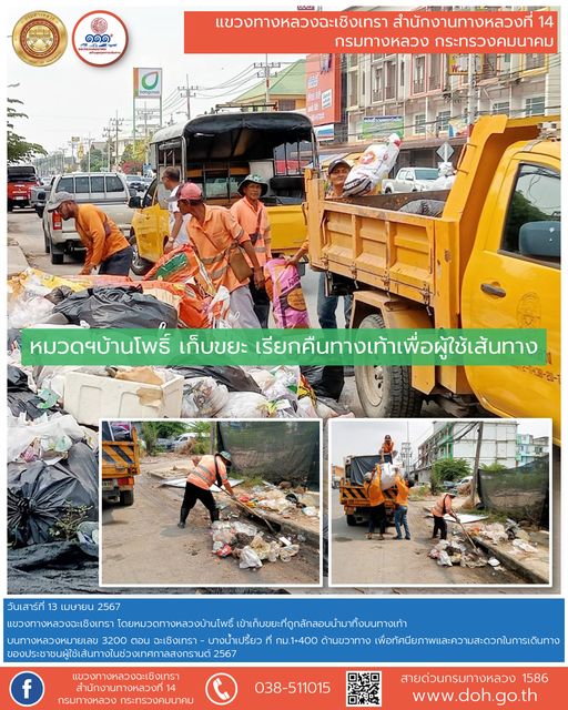 เก็บขยะที่ถูกลักลอบนำมาทิ้งบนทางเท้า |