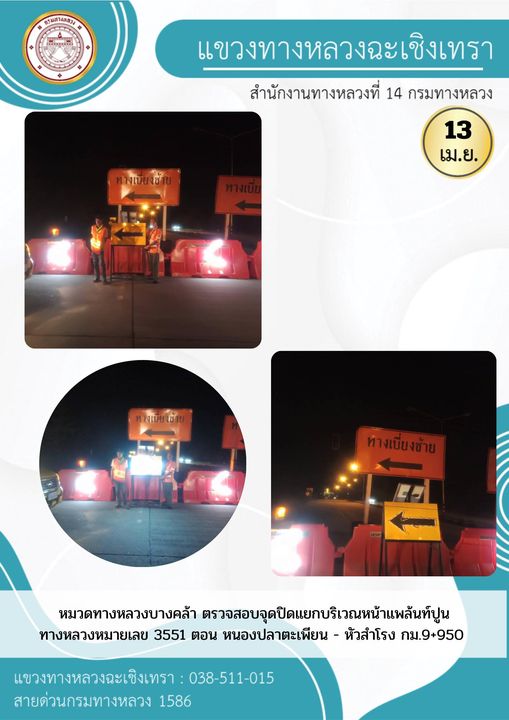 ตรวจสอบจุดปิดแยกบริเวณหน้าแพล้นท์ปูน |