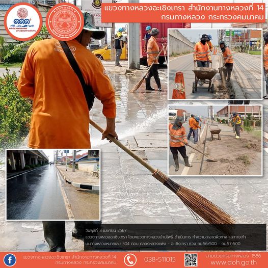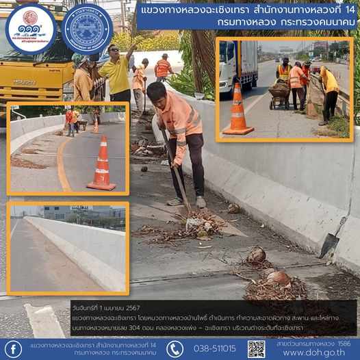 ทำความสะอาดผิวทาง สะพาน และไหล่ทาง |
