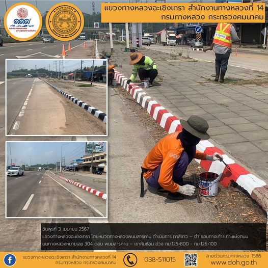 ทาสีขาว – ดำ ขอบทางเท้า/เกาะแบ่งถนน |