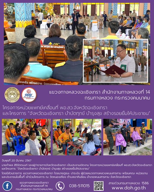 โครงการหน่วยแพทย์เคลื่อนที่ พอ.สว.จังหวัดฉะเชิงเทรา และโครงการ “จังหวัดฉะเชิงเทรา บำบัดทุกข์ บำรุงสุข สร้างรอยยิ้มให้ประชาชน” |