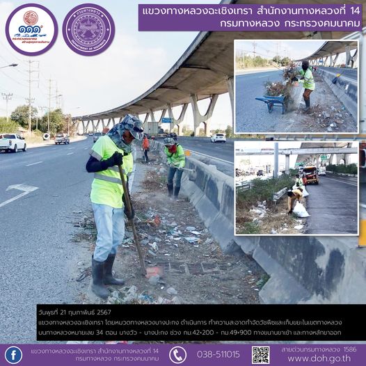 ทำความสะอาดคราบน้ำมันที่รั่วไหลลงผิวจราจร |