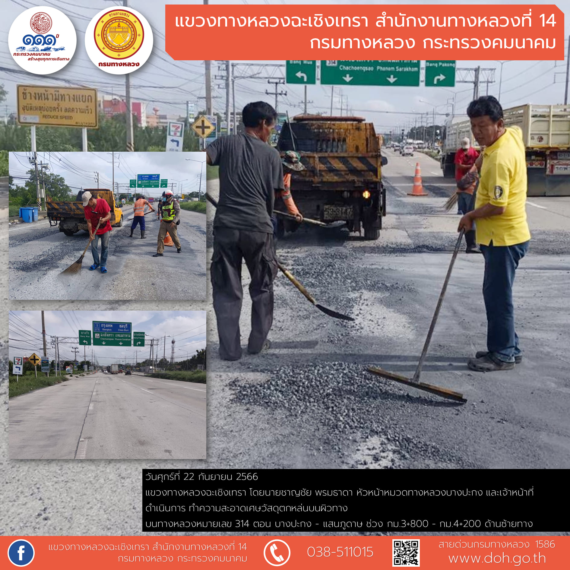 ทำความสะอาดเศษวัสดุตกหล่นบนผิวทาง |