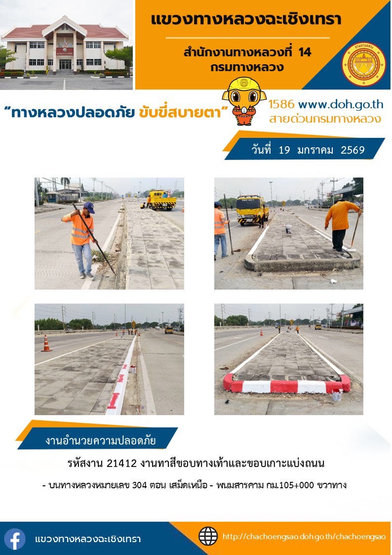 งานทาสีขอบทางเท้าเเละขอบเกาะเเบ่งถนน |