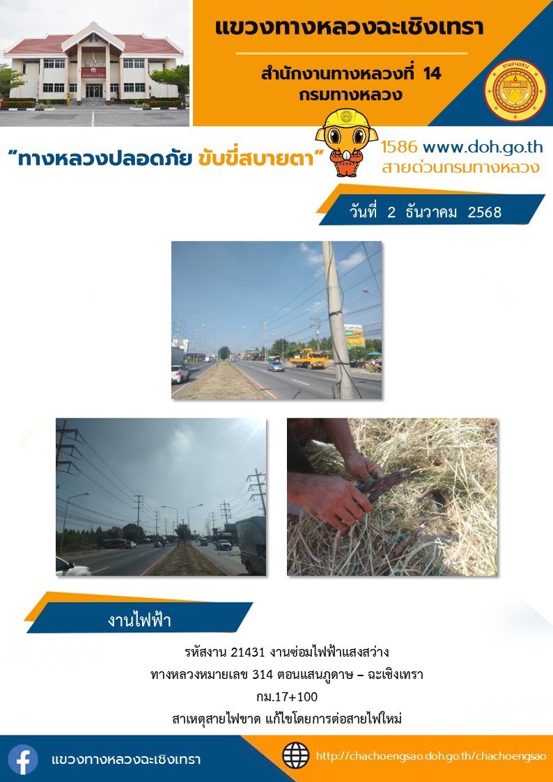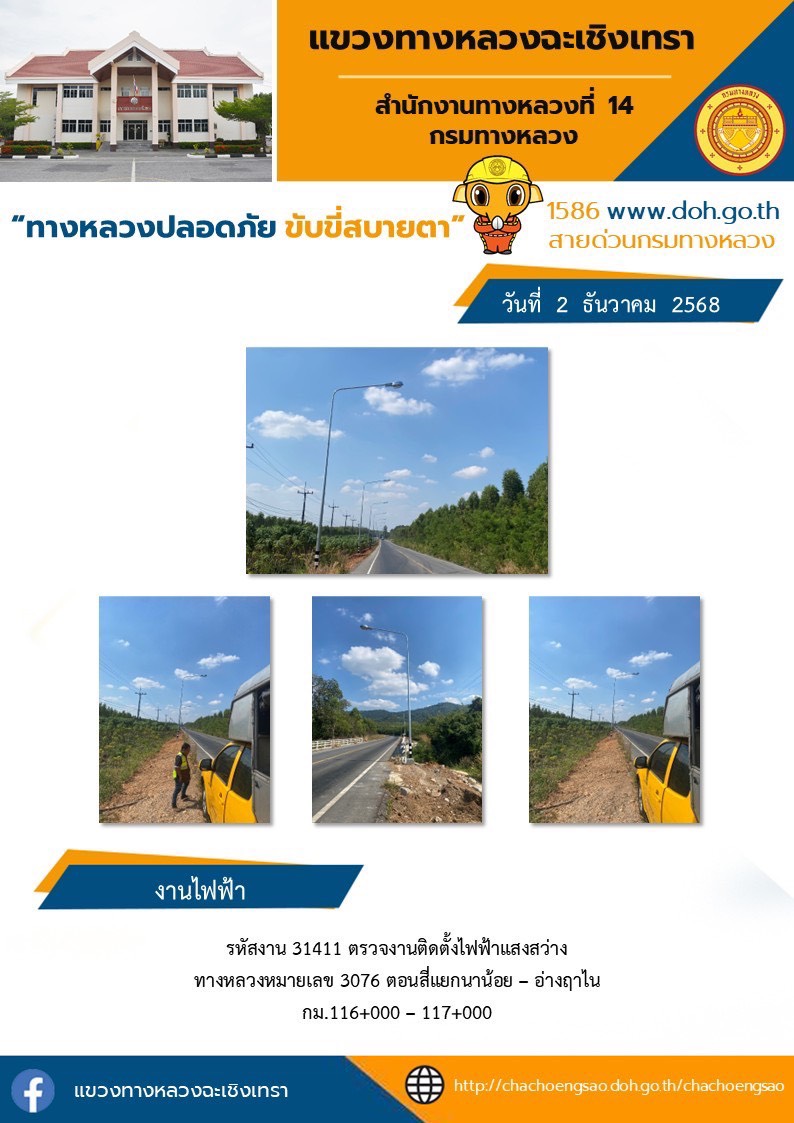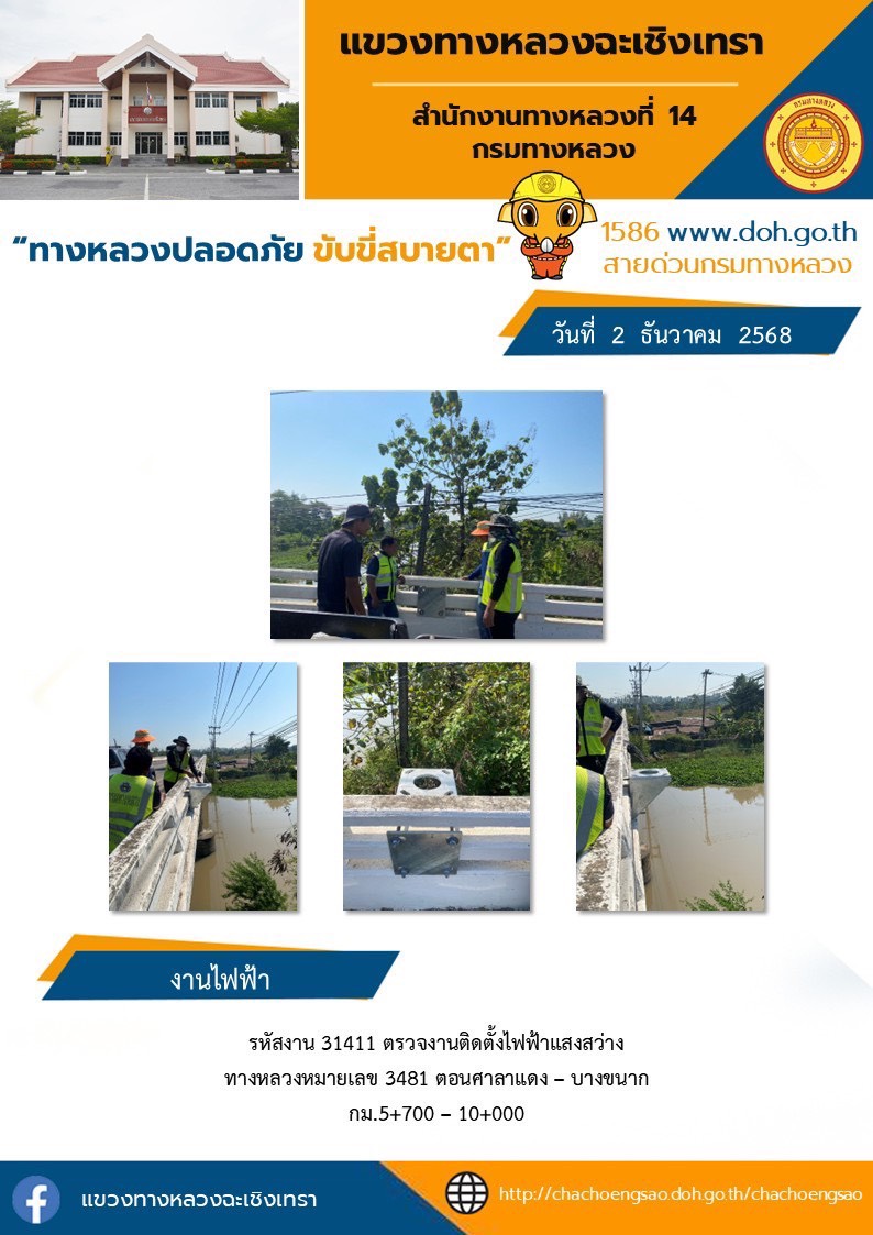งานตรวจติดตั้งเสาไฟส่องสว่าง |