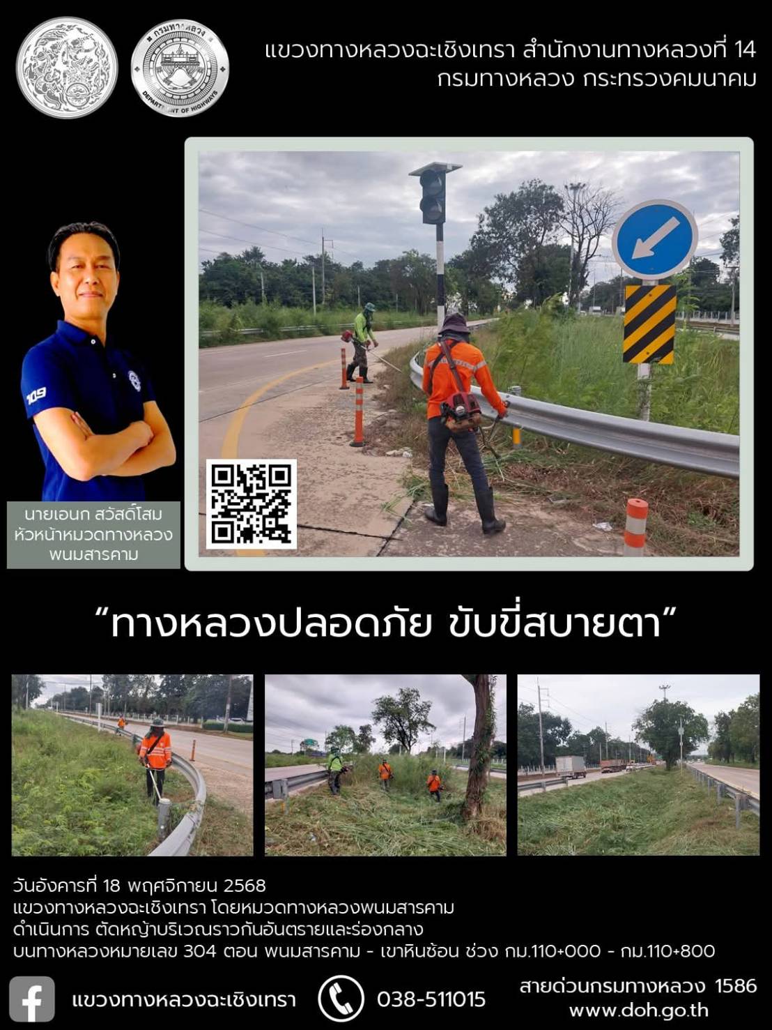 ตัดหญ้าบริเวณราวกันอันตราย |