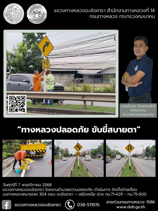 ติดตั้งป้ายเตือน “จุดกลับรถ” |