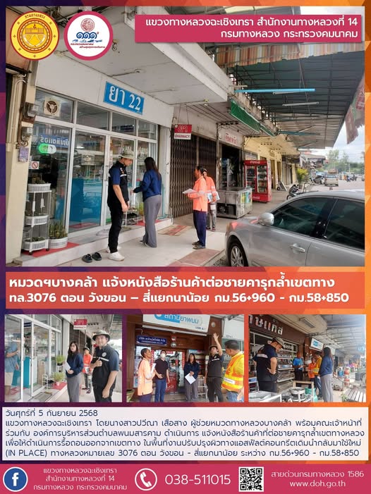 แจ้งหนังสือร้านค้าต่อชายคารุกล้ำเขตทาง |