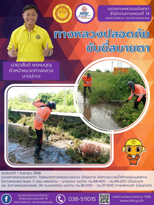 เปิดทางระบายน้ำที่ท่วมขังบนผิวทาง |