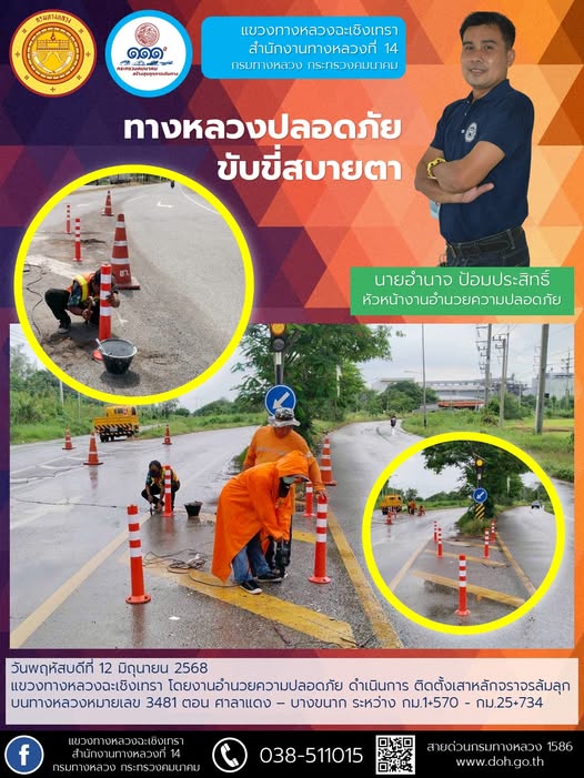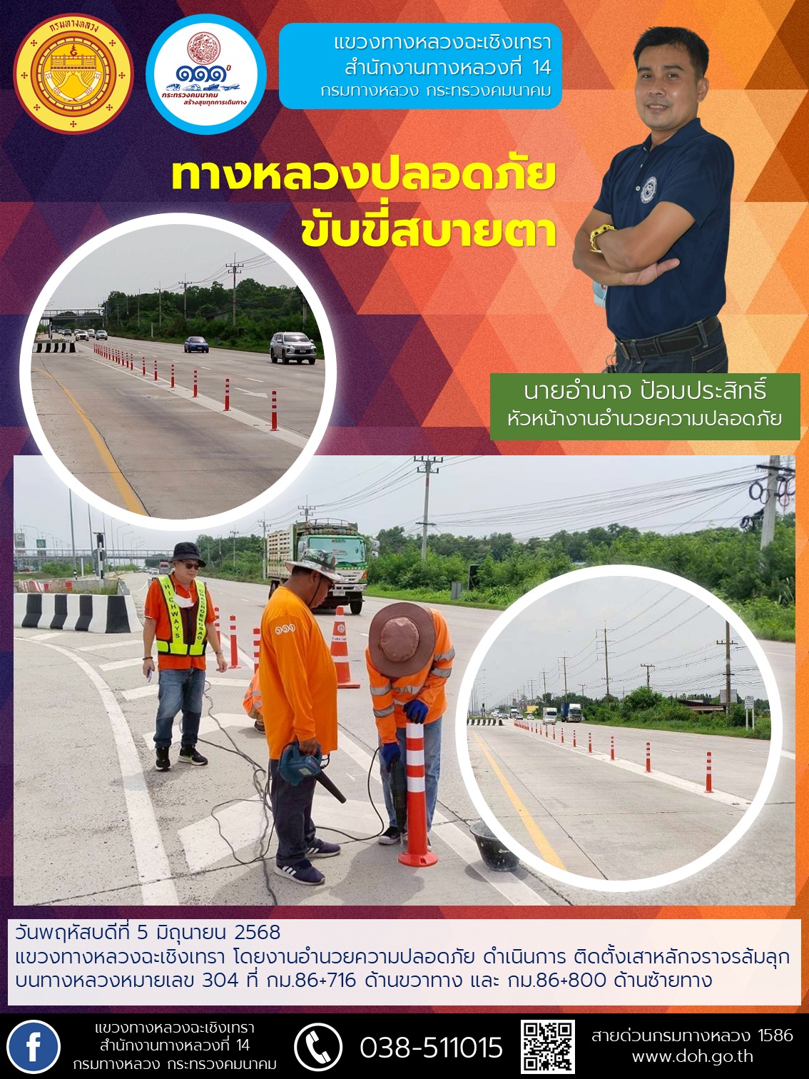 ติดตั้งเสาหลักจราจรล้มลุก |