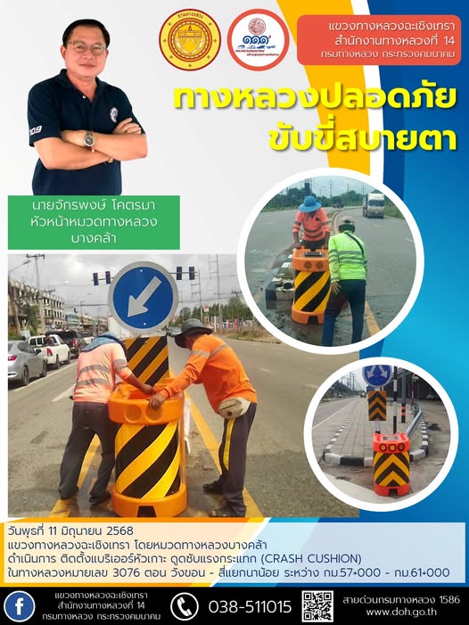 ติดตั้งแบริเออร์หัวเกาะ แบบดูดซับแรงกระแทก |