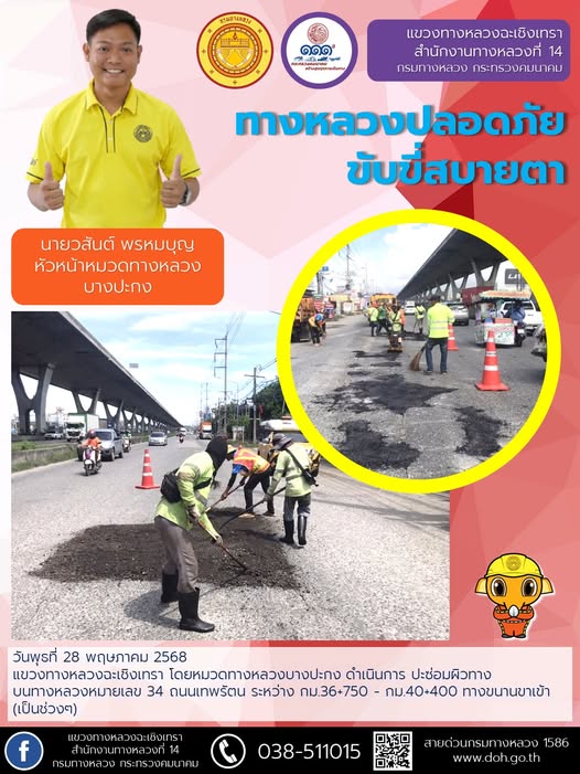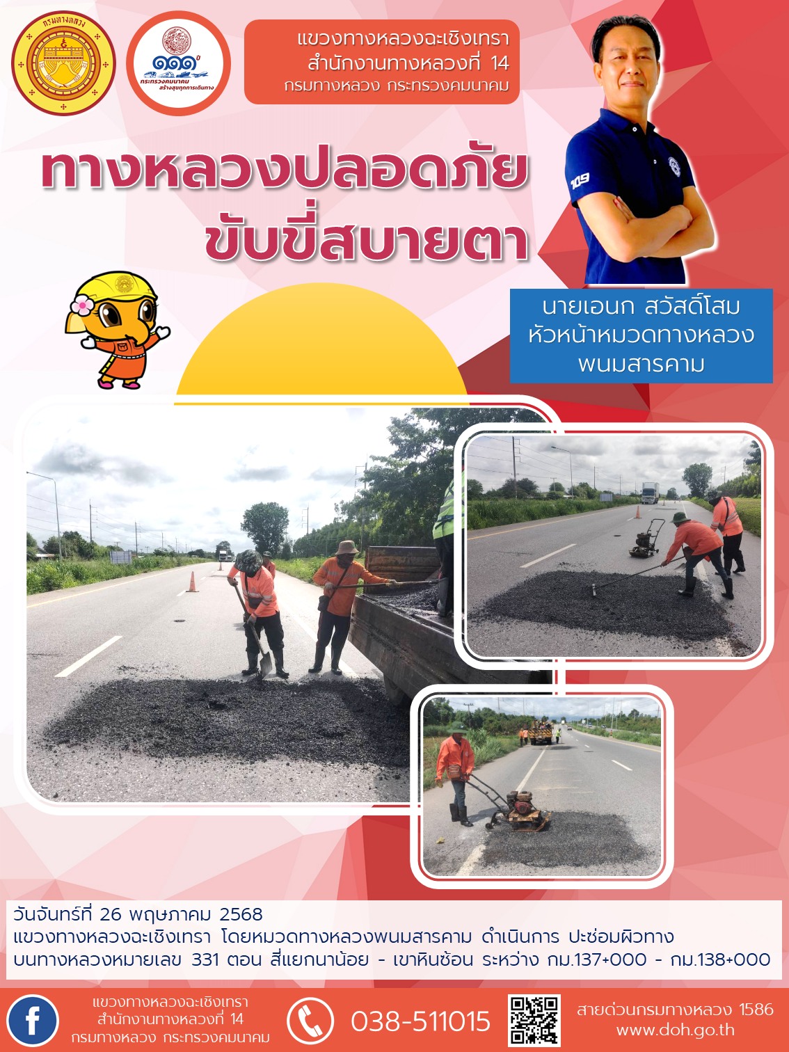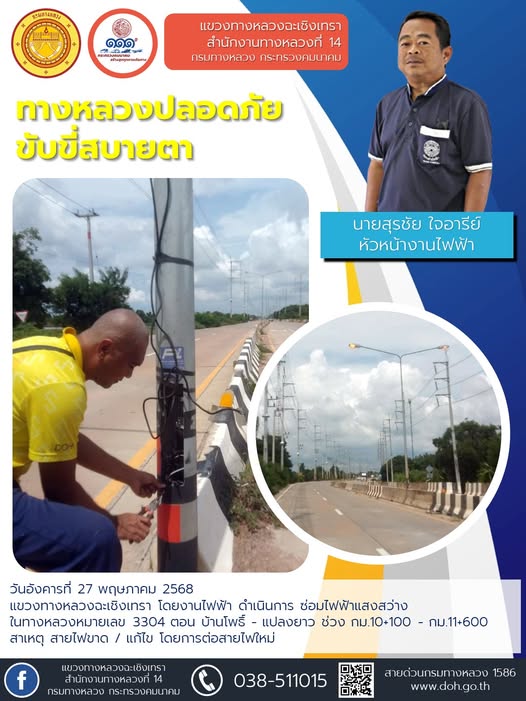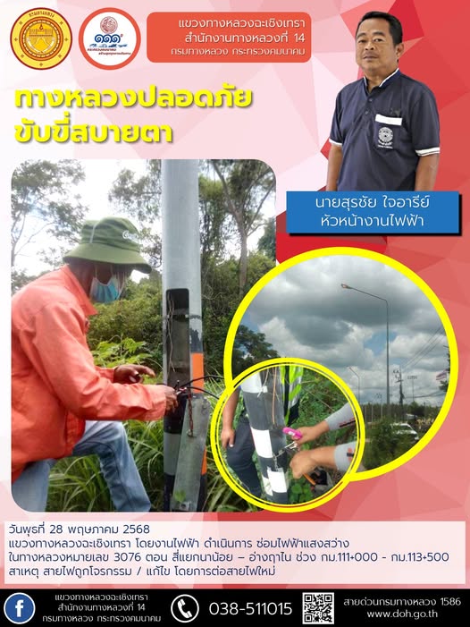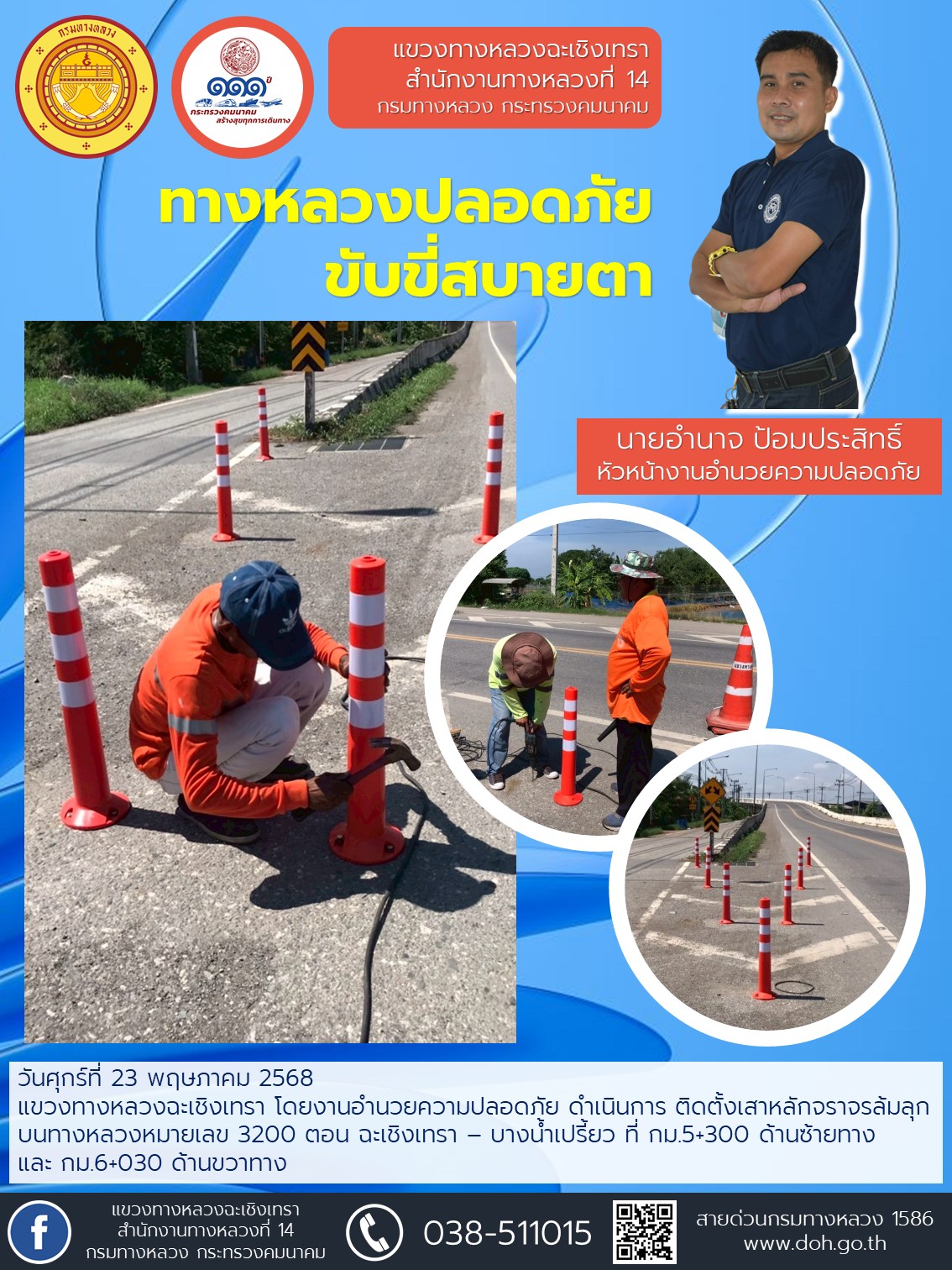 ติดตั้งเสาหลักจราจรล้มลุก |
