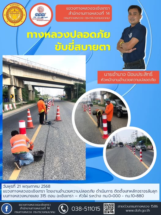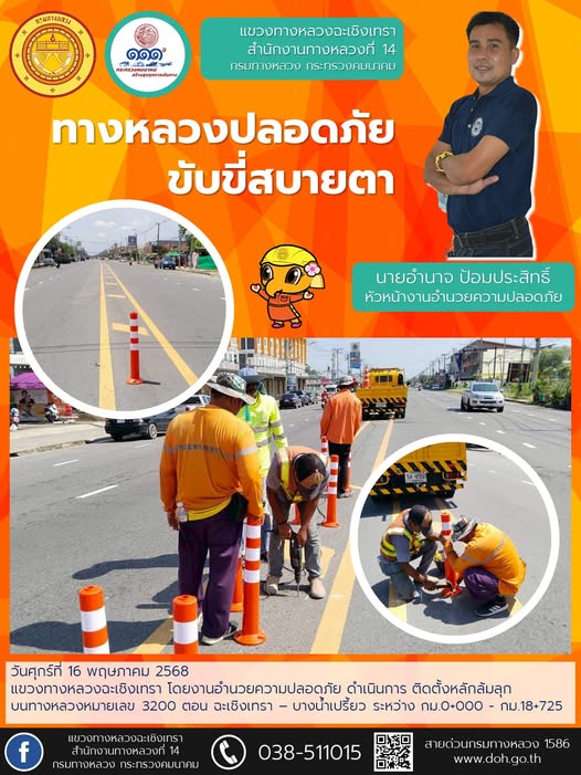 ติดตั้งเสาหลักจราจรล้มลุก |