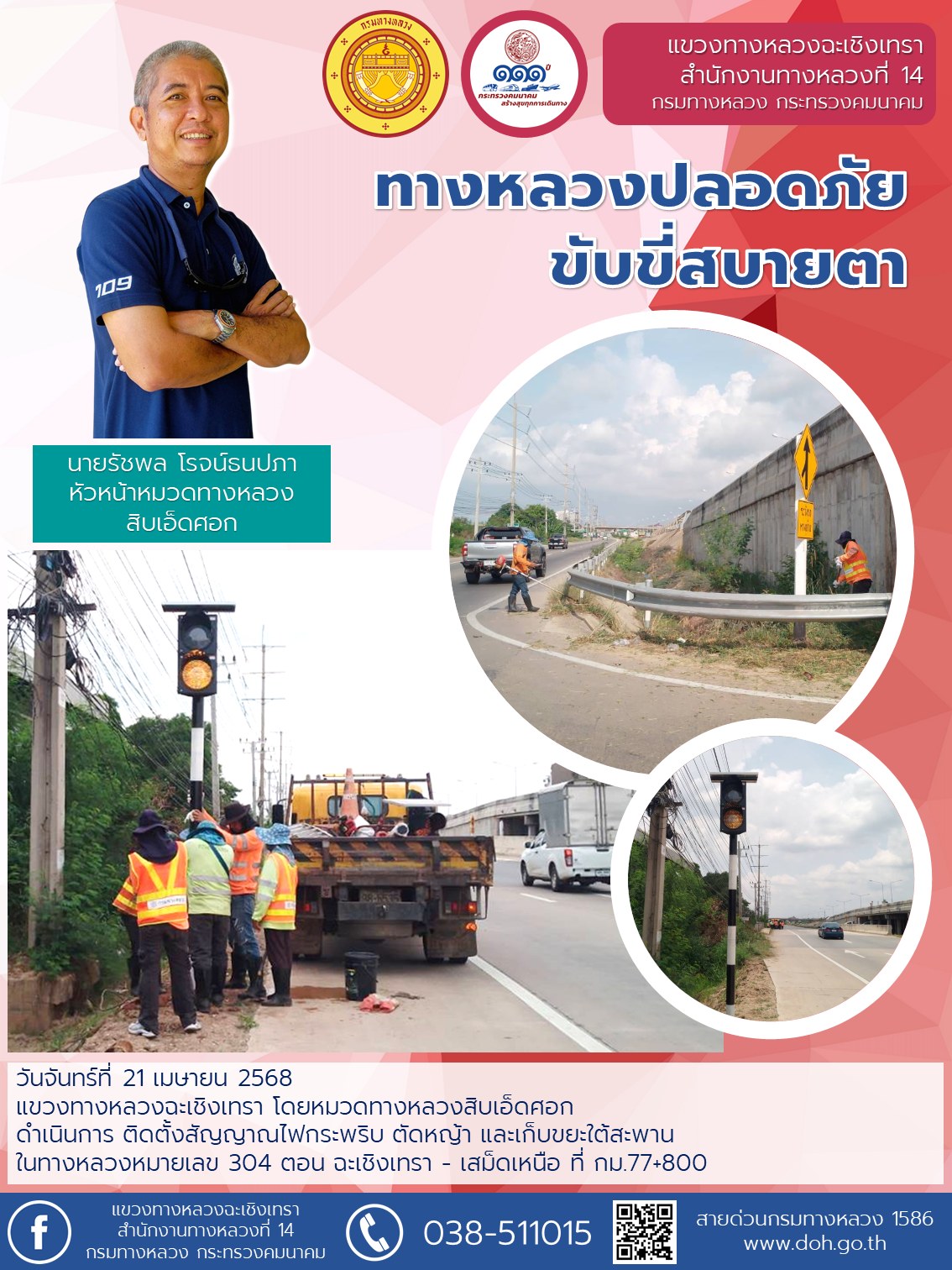 1425 21/04/2568 ติดตั้งสัญญาณไฟกระพริบ ตัดหญ้า และเก็บขยะใต้สะพาน
