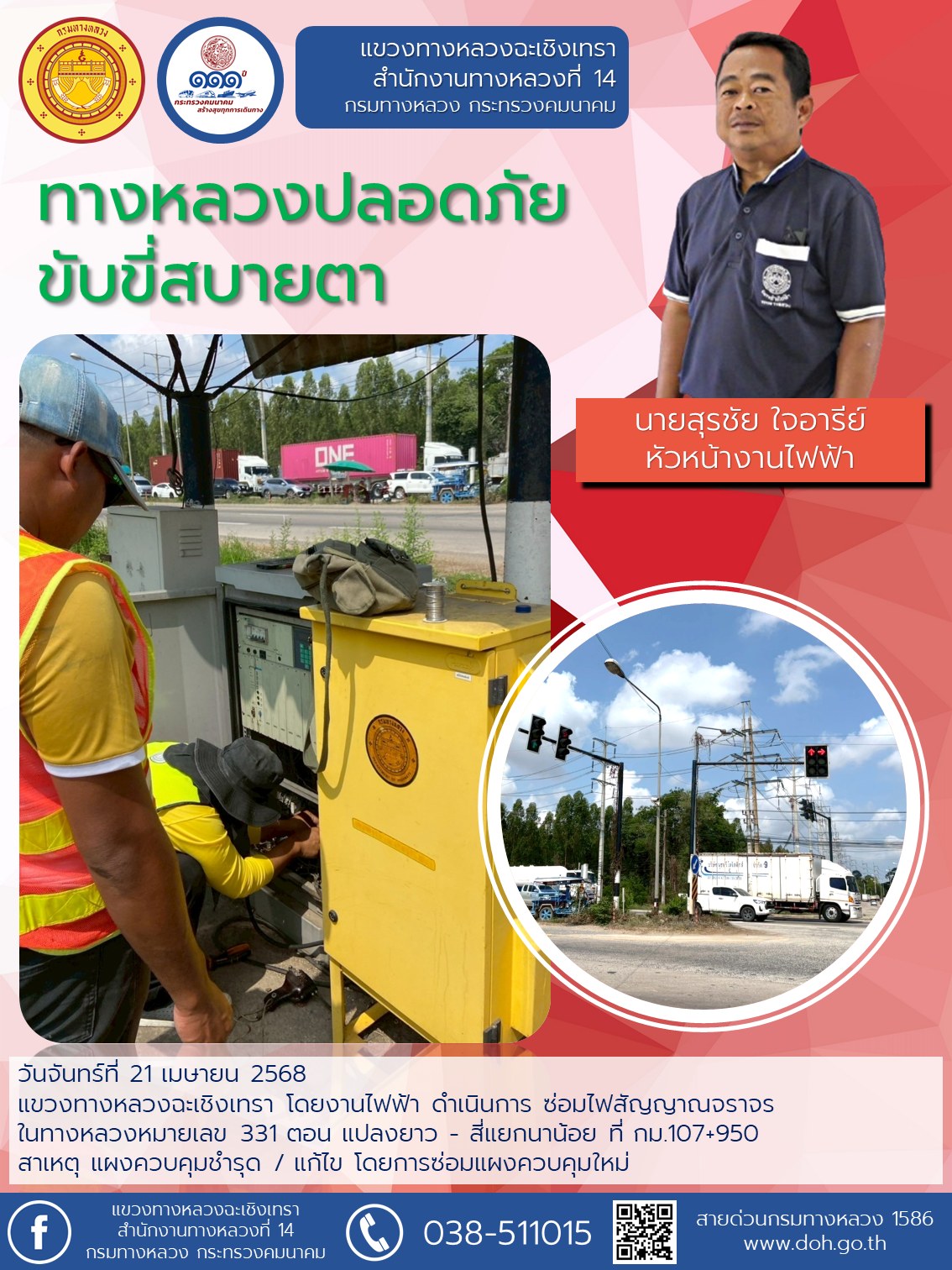 1424 21/04/2568 ซ่อมไฟสัญญาณจราจร