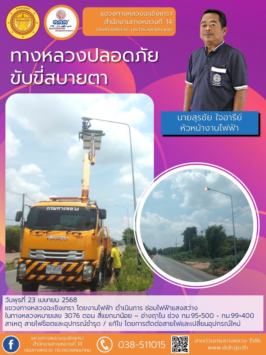 1419 23/04/2568 ซ่อมไฟฟ้าแสงสว่าง