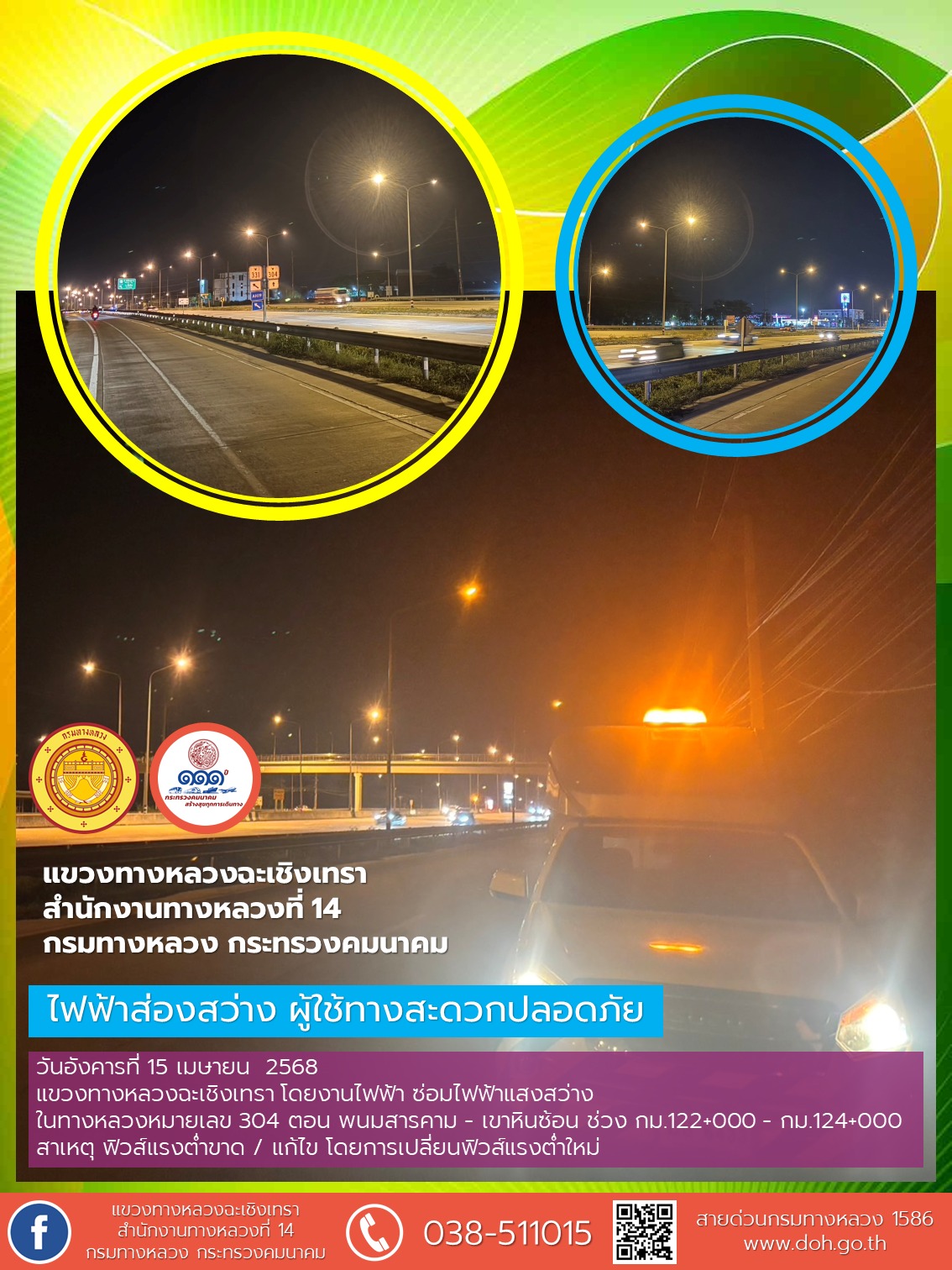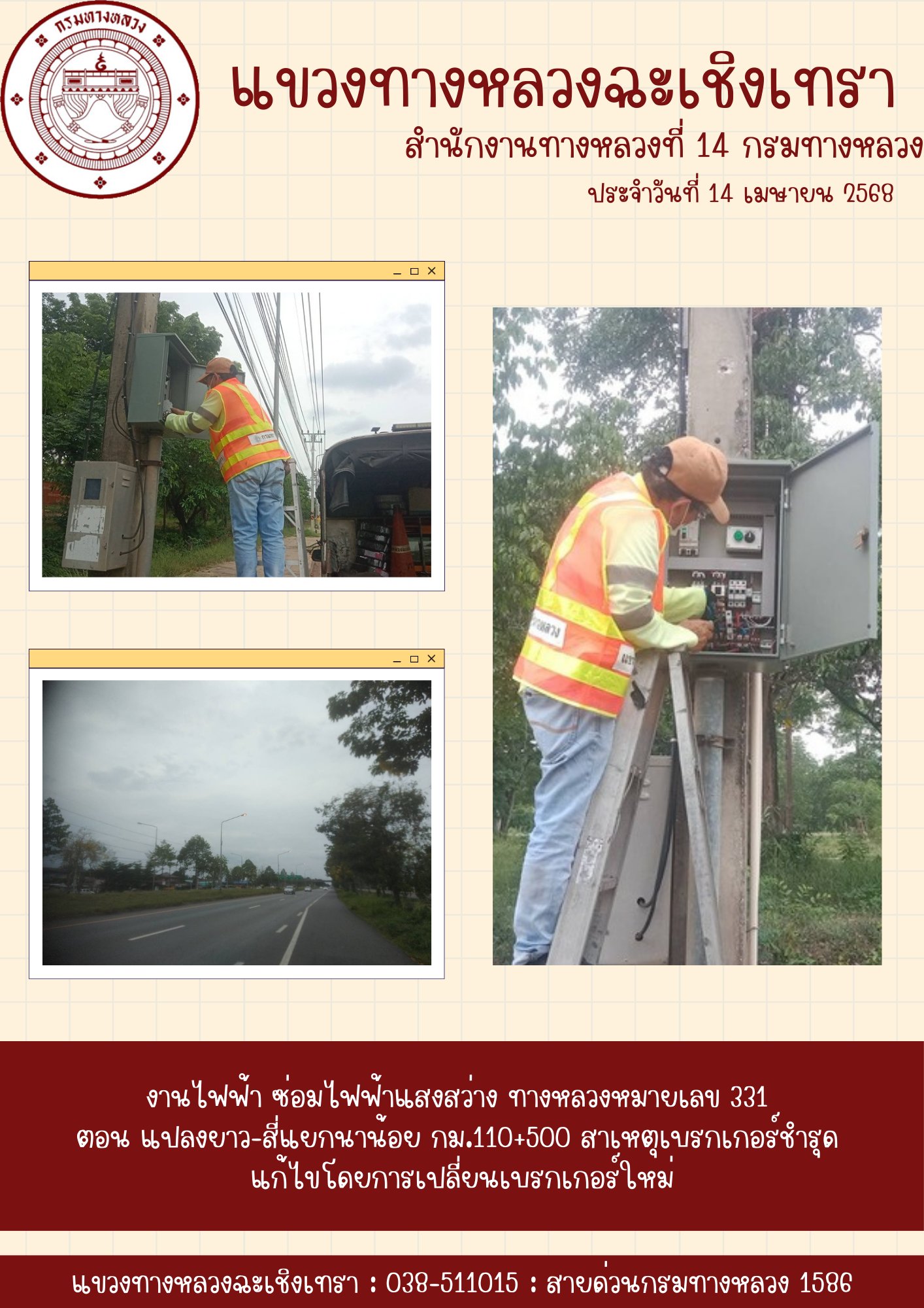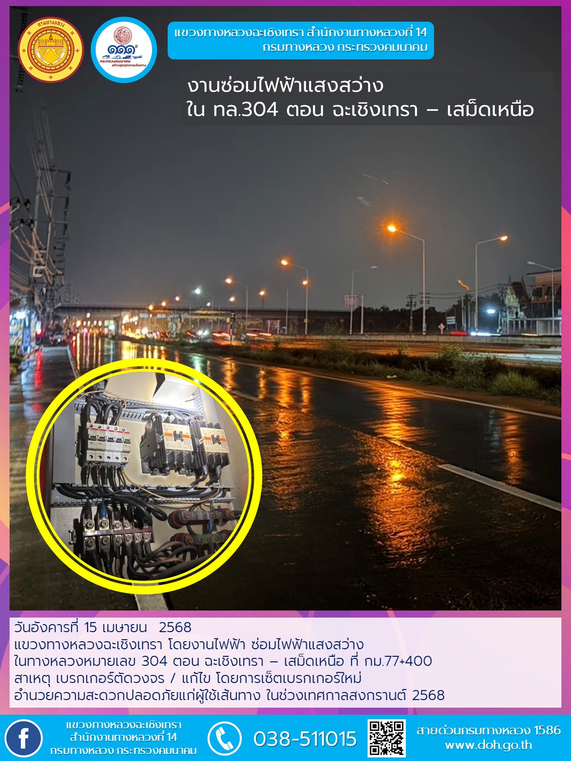 1437 15/04/2568 ซ่อมไฟฟ้าแสงสว่าง