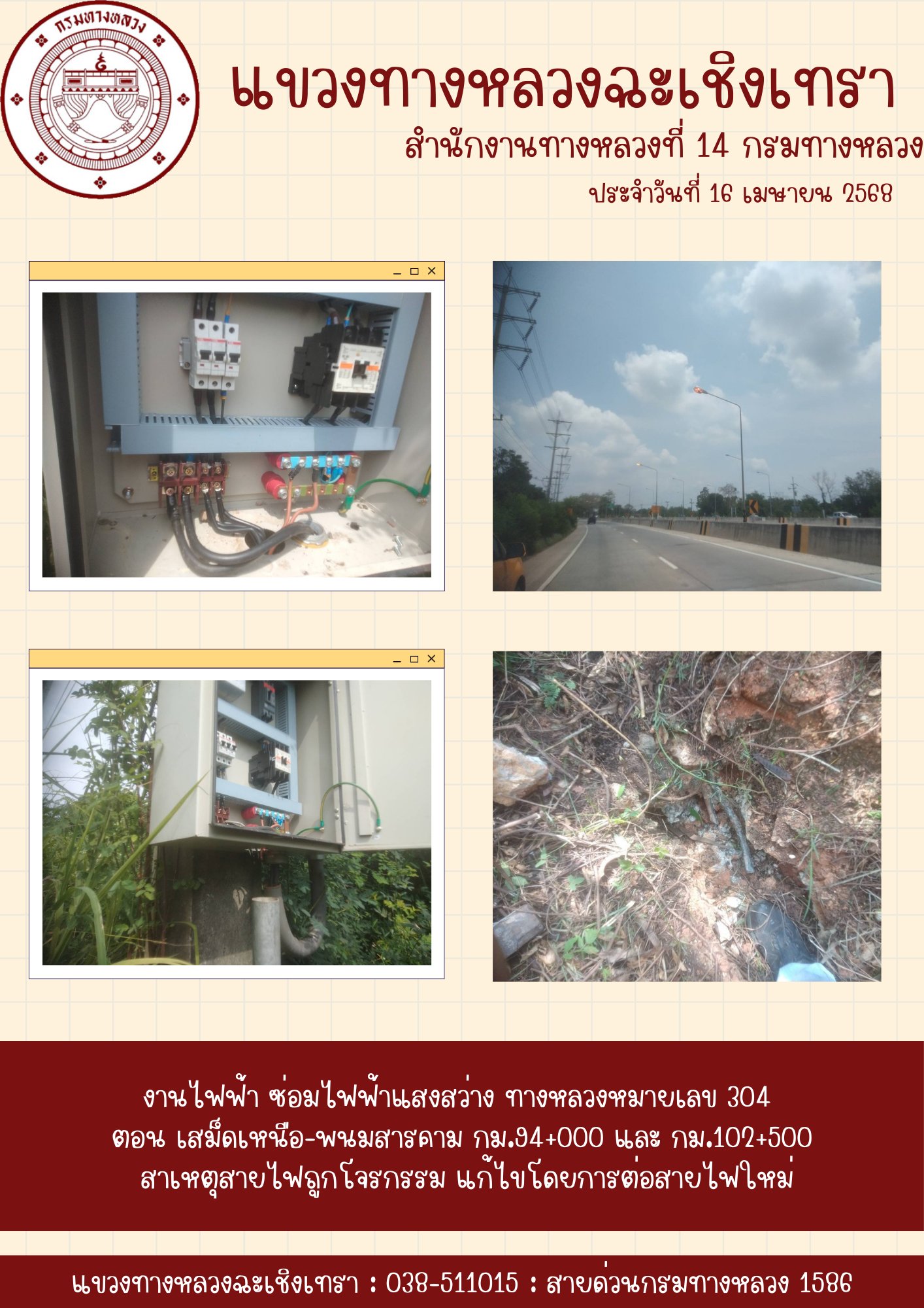 1434 16/04/2568 ซ่อมไฟฟ้าแสงสว่าง