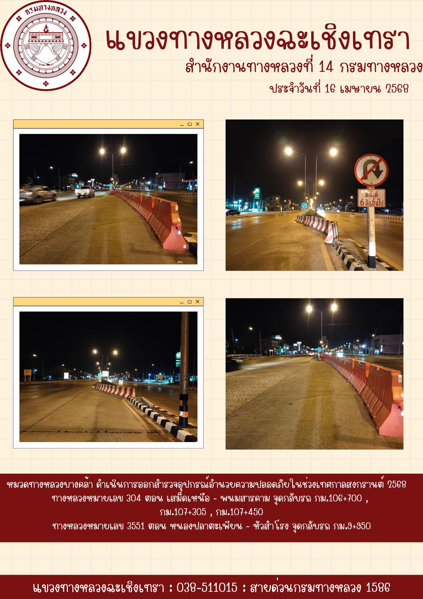 1430 16/04/2568 ออกสำรวจอุปกรณ์อำนวยความปลอดภัยในช่วงเทศกาลสงกรานต์ 2568