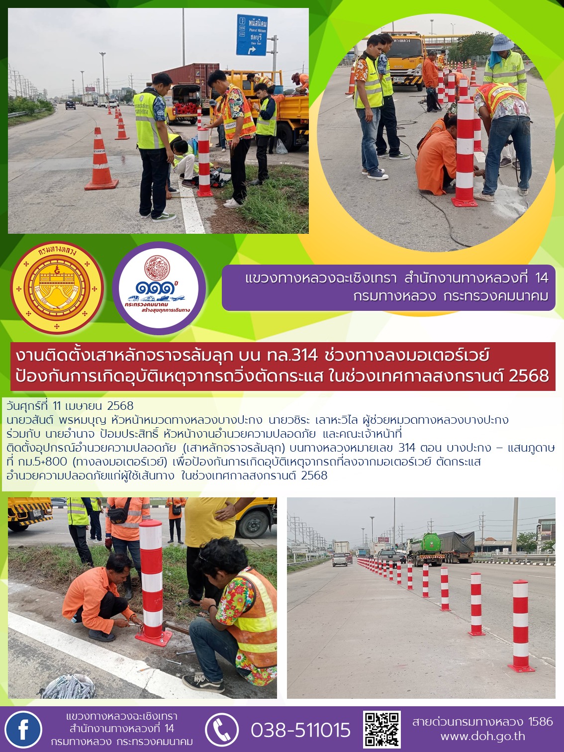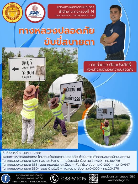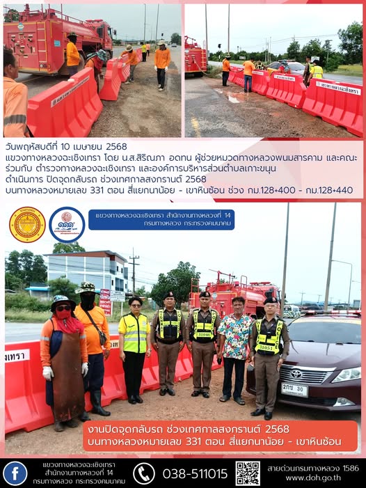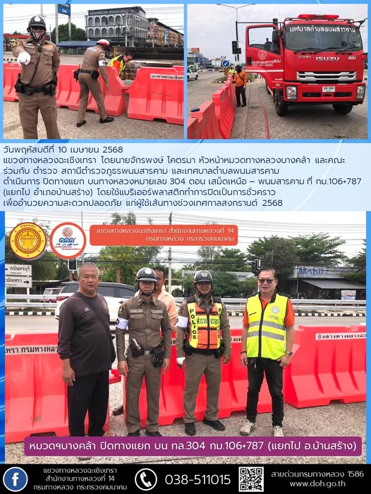 ปิดจุดกลับรถ บนทางหลวงหมายเลข 304 ช่วงเทศกาลสงกรานต์ 2568 |