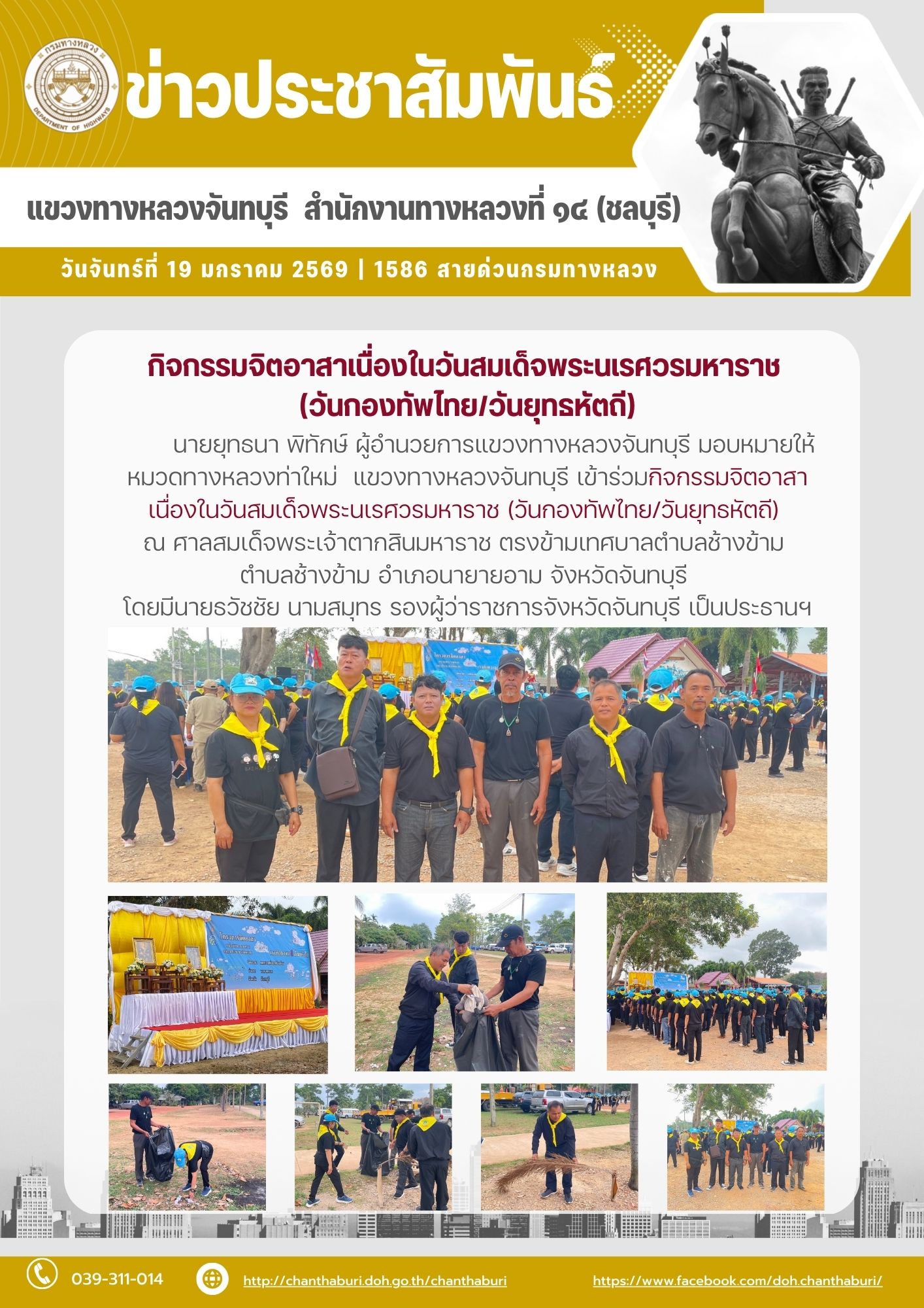 หมวดทางหลวงท่าใหม่ แขวงทางหลวงจันทบุรี เข้าร่วมกิจกรรมจิตอาสา เนื่องในวันสมเด็จพระนเรศวรมหาราช (วันกองทัพไทย/วันยุทธหัตถี)