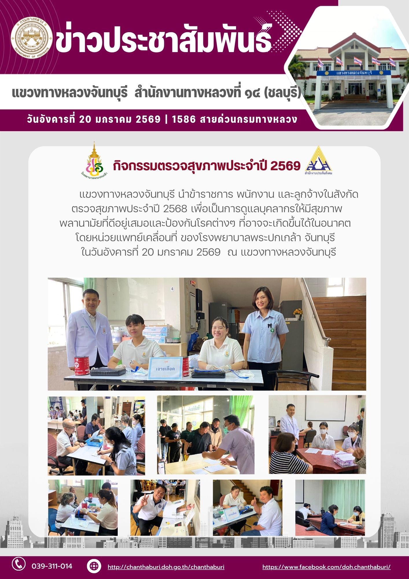 แขวงทางหลวงจันทบุรี นำข้าราชการ พนักงาน และลูกจ้างในสังกัด ตรวจสุขภาพประจำปี 2568