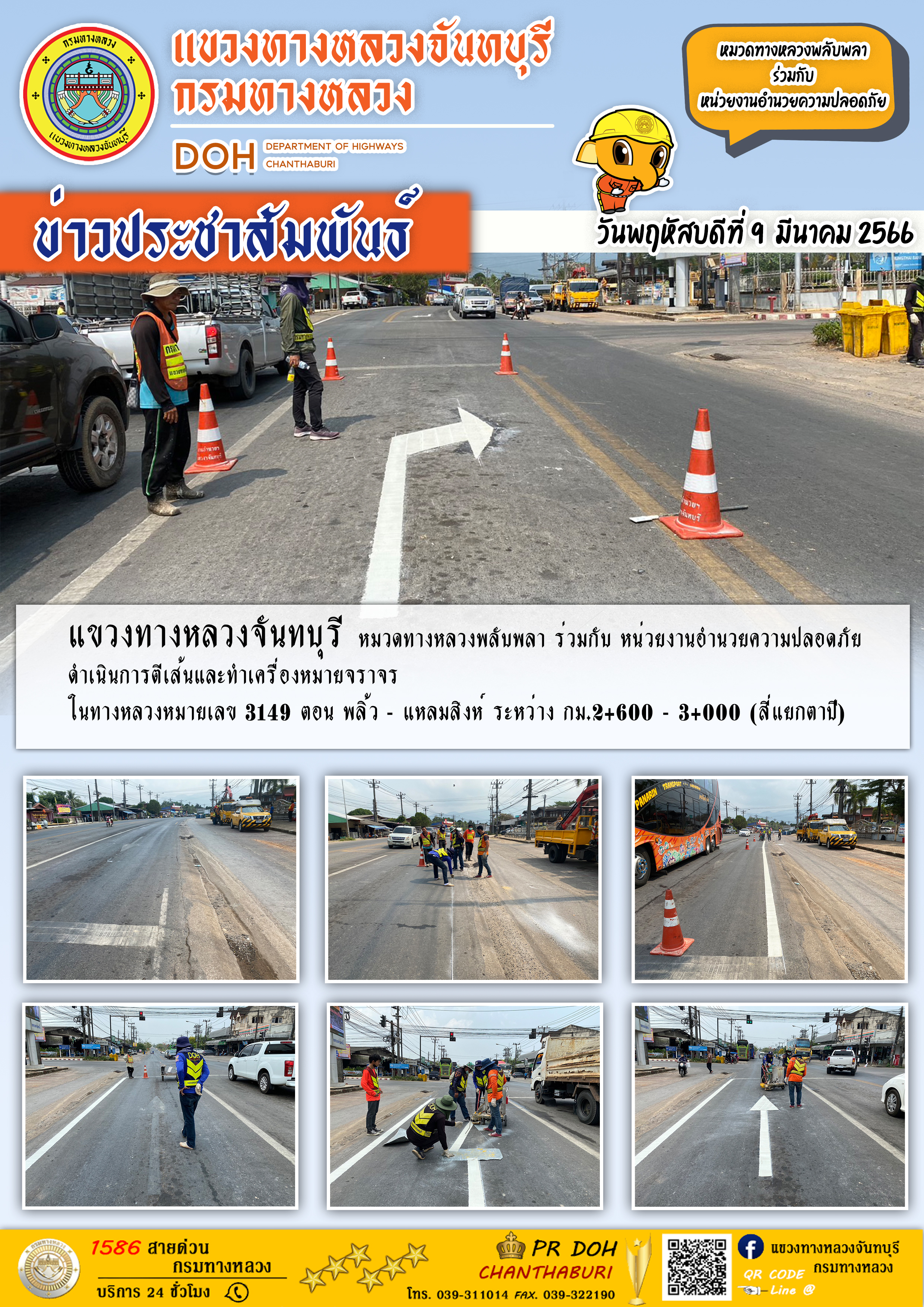 แขวงทางหลวงจันทบุรี หมวดทางหลวงพลับพลา ร่วมกับ หน่วยงานอำนวยความปลอดภัย ดำเนินการตีเส้นและทำเครื่องหมายจราจร
