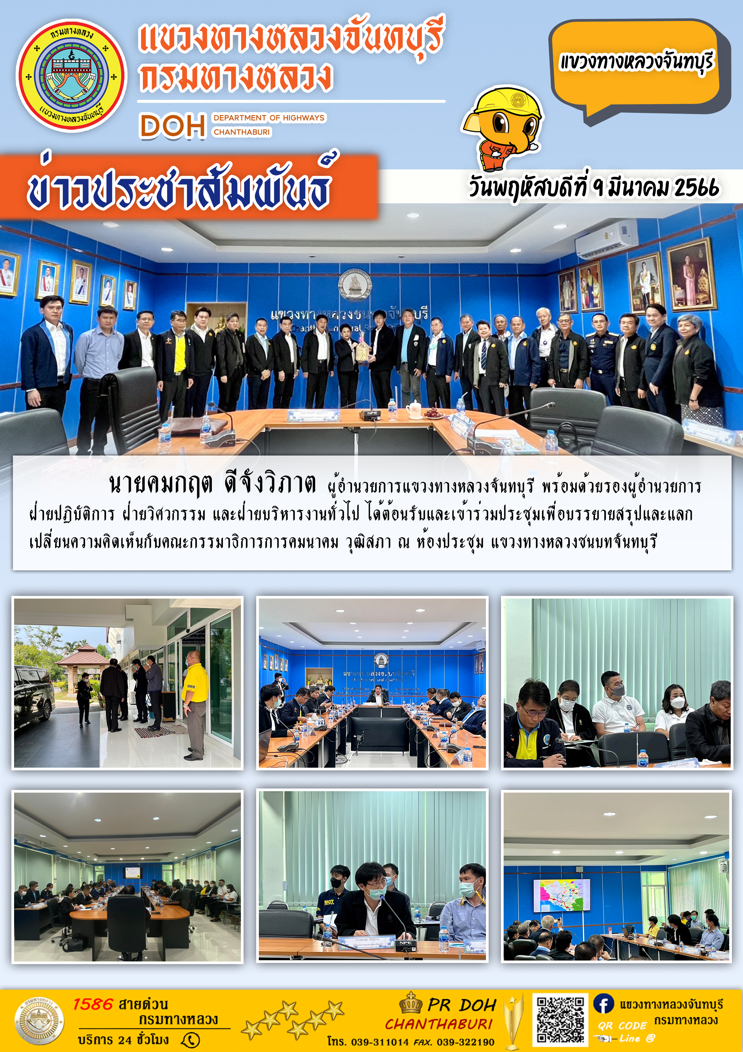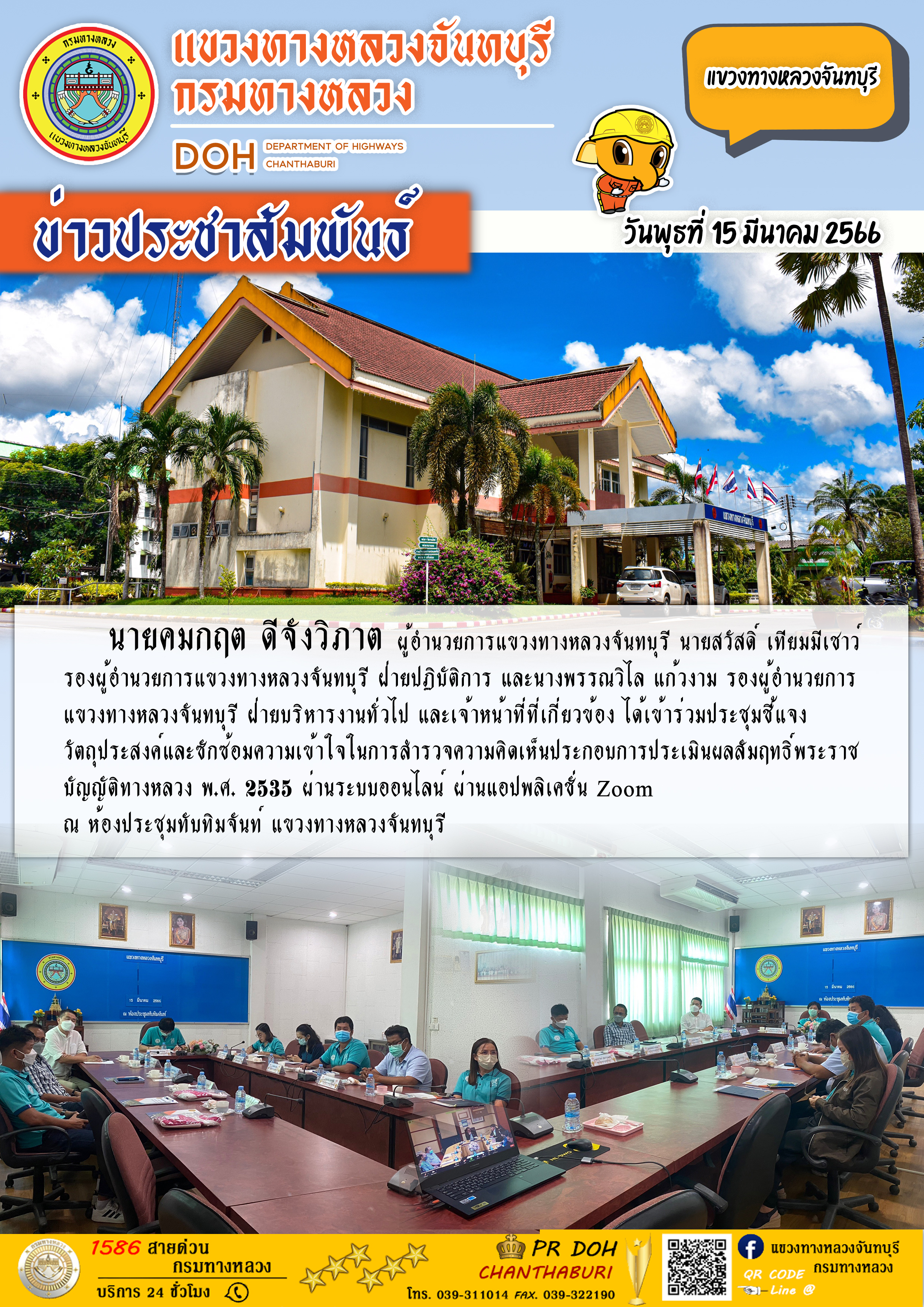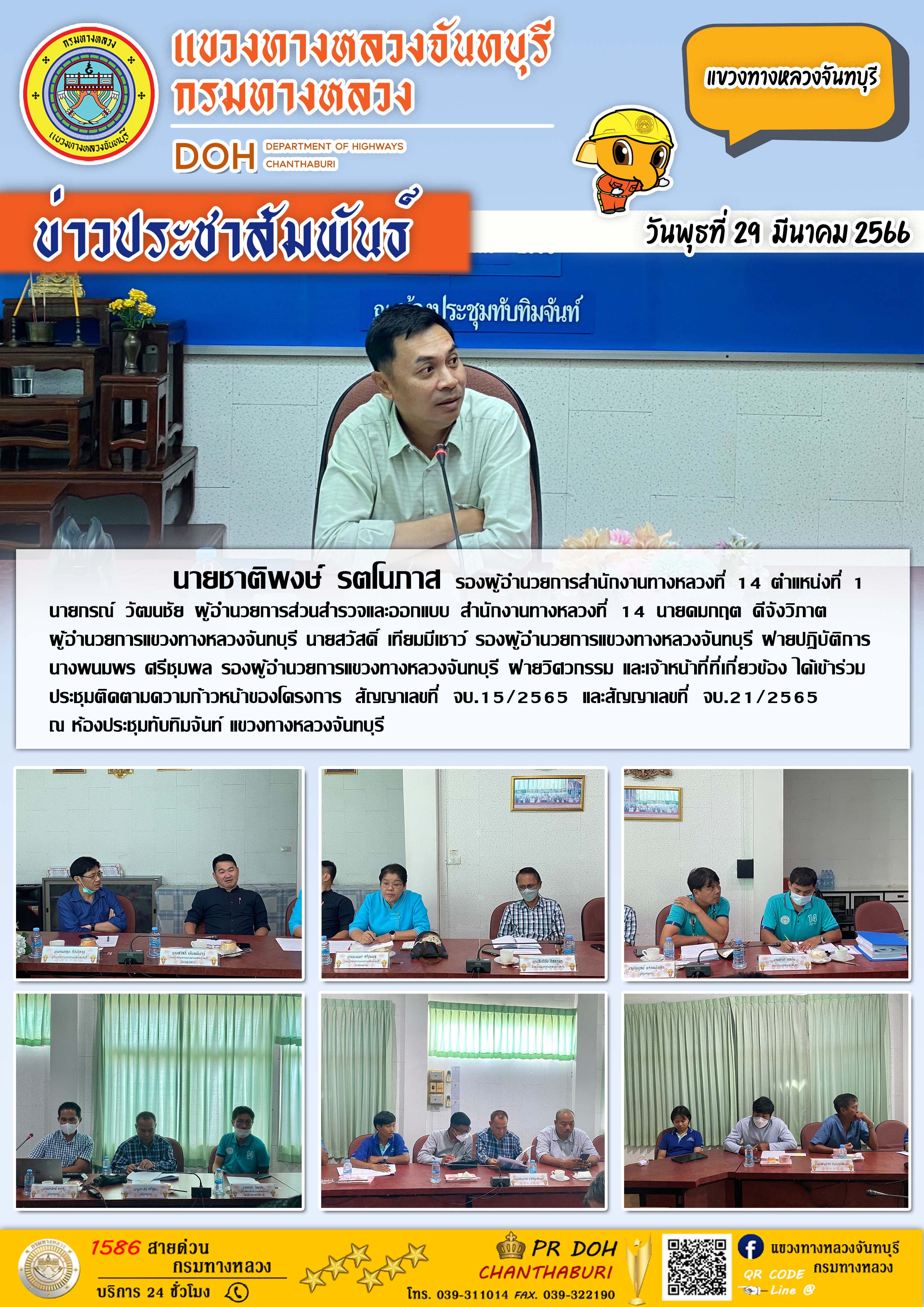 แขวงทางหลวงจันทบุรี ได้เข้าร่วมประชุมติดตามความก้าวหน้าของโครงการ สัญญาเลขที่ จบ.15/2565 และสัญญาเลขที่ จบ.21/2565
