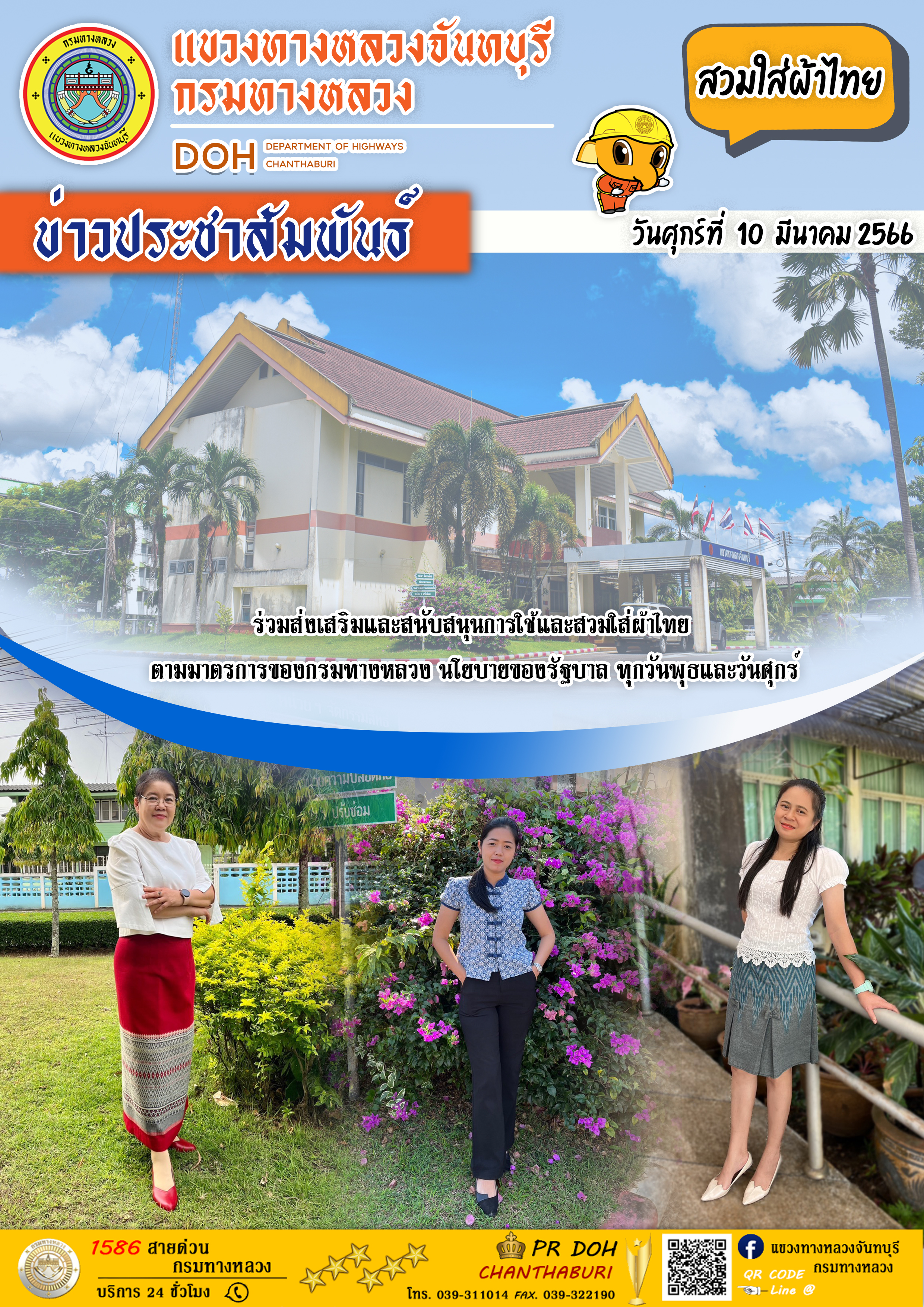 แขวงทางหลวงจันทบุรี ร่วมส่งเสริมและสนับสนุนการใช้และสวมใส่ผ้าไทย
