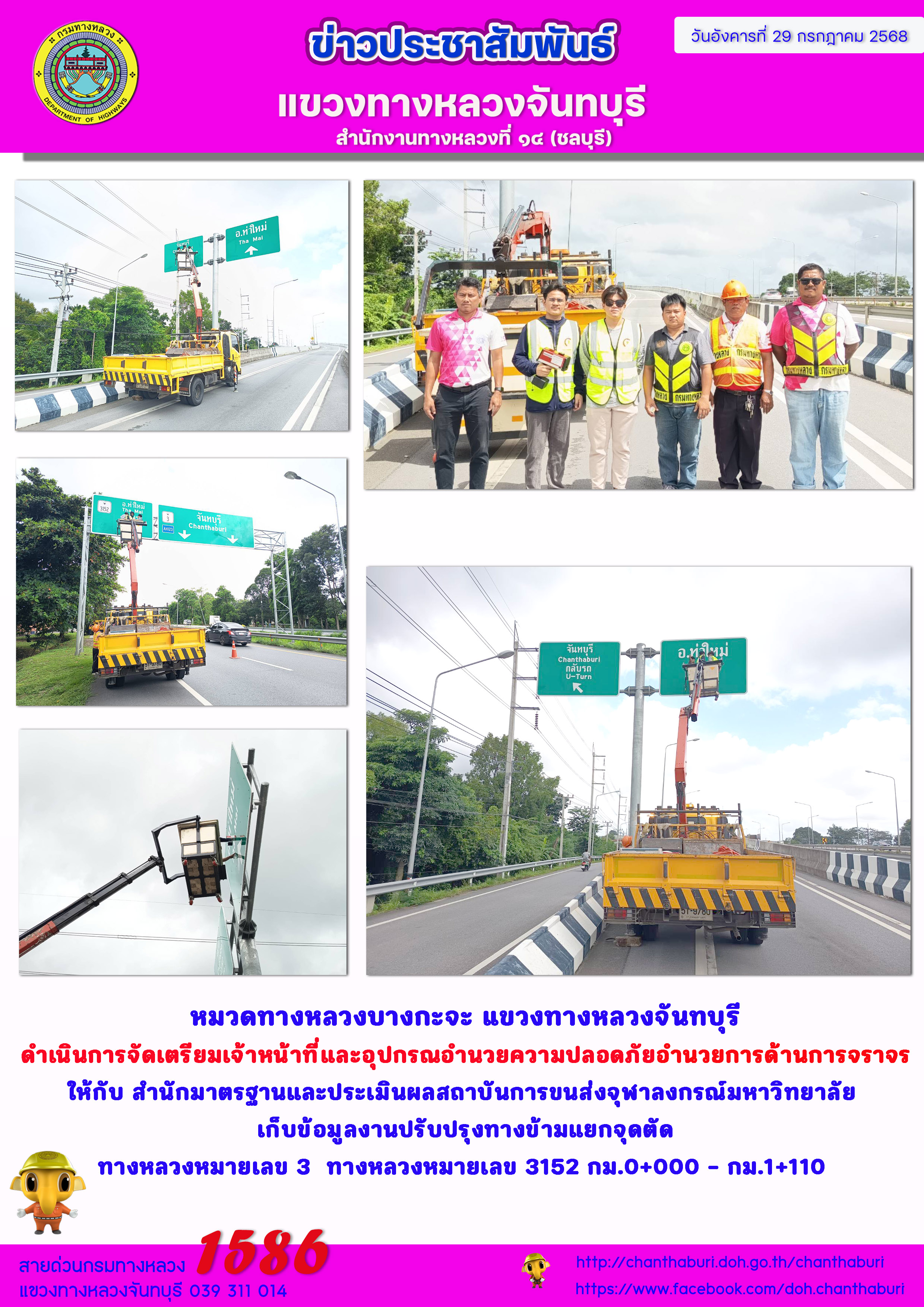 หมวดทางหลวงบางกะจะ แขวงทางหลวงจันทบุรี ดำเนินการจัดเตรียมเจ้าหน้าที่และอุปกรณอำนวยความปลอดภัยอำนวยการด้านการจราจร ให้กับ สำนักมาตรฐานและประเมินผลสถาบันการขนส่งจุฬาลงกรณ์มหาวิทยาลัย