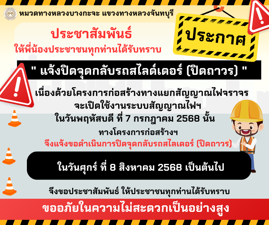 " แจ้งปิดจุดกลับรถสไลด์เดอร์ (ปิดถาวร) "