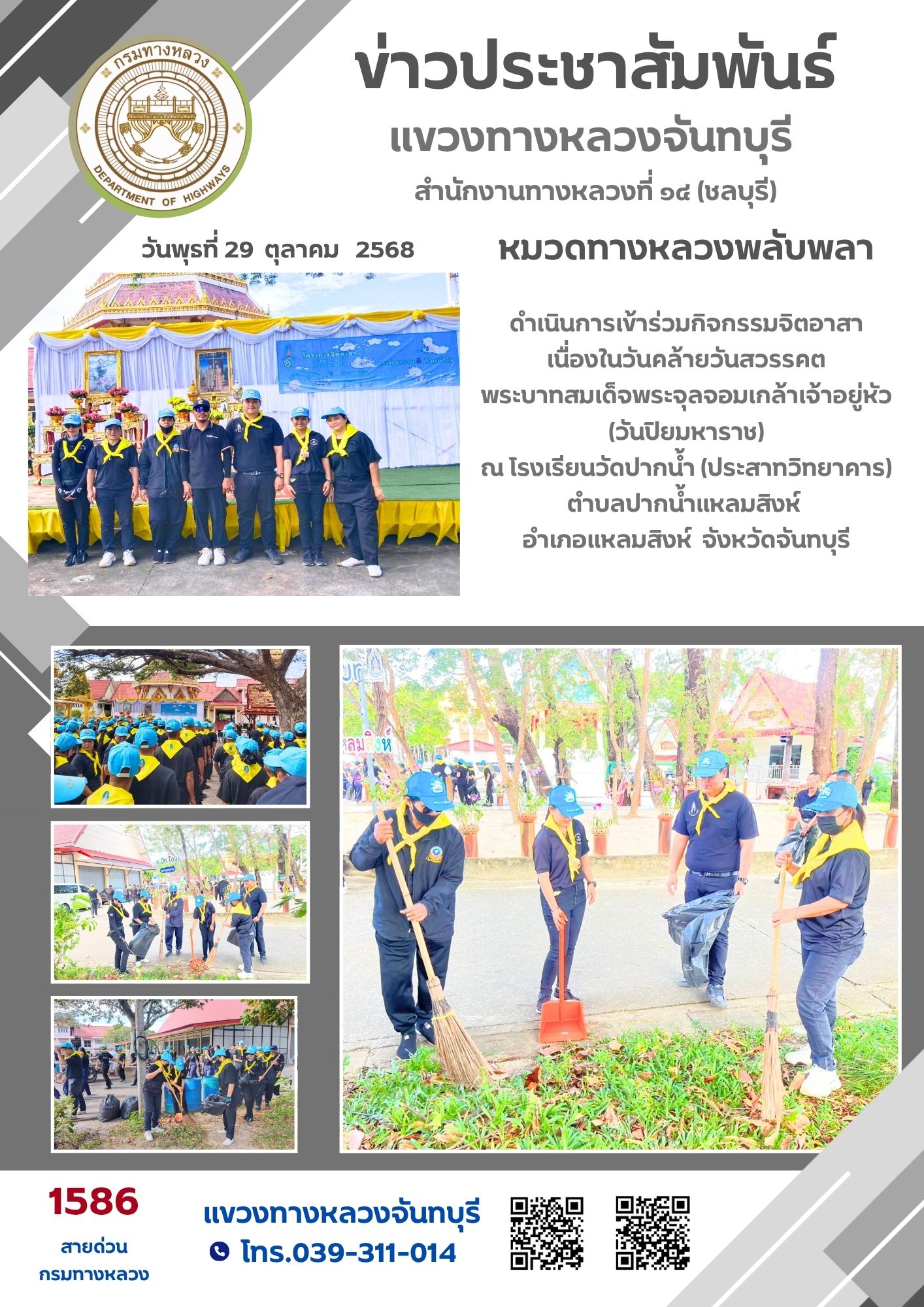 หมวดทางหลวงพลับพลา แขวงทางหลวงจันทบุรี เข้าร่วมกิจกรรมจิตอาสาเนื่องในวันคล้ายวันสวรรคตพระบาทสมเด็จพระจุลจอมเกล้าเจ้าอยู่หัว (วันปิยมหาราช)